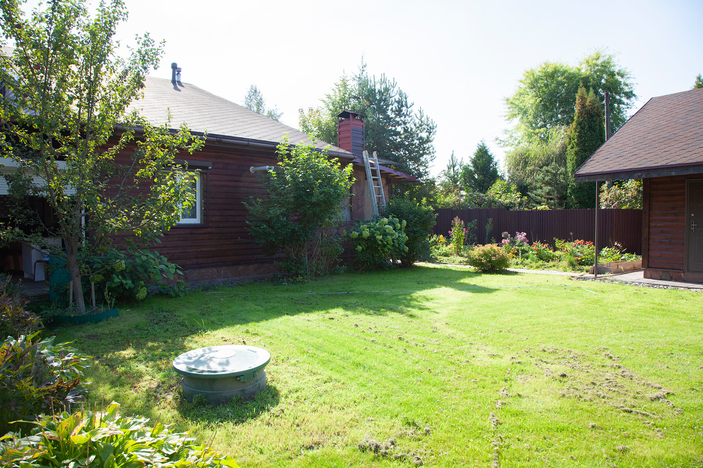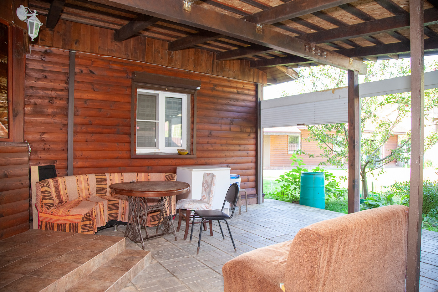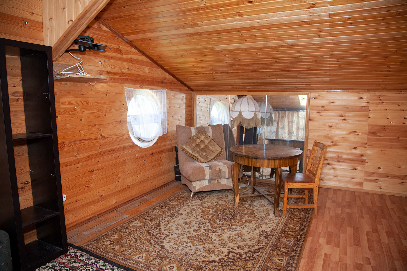 Также отдельное строение, в котором на первом этаже множество подсобных и хозяйственных помещений, а на втором этаже с отдельным входом есть изолированная уютная комната с мансардными окнами.