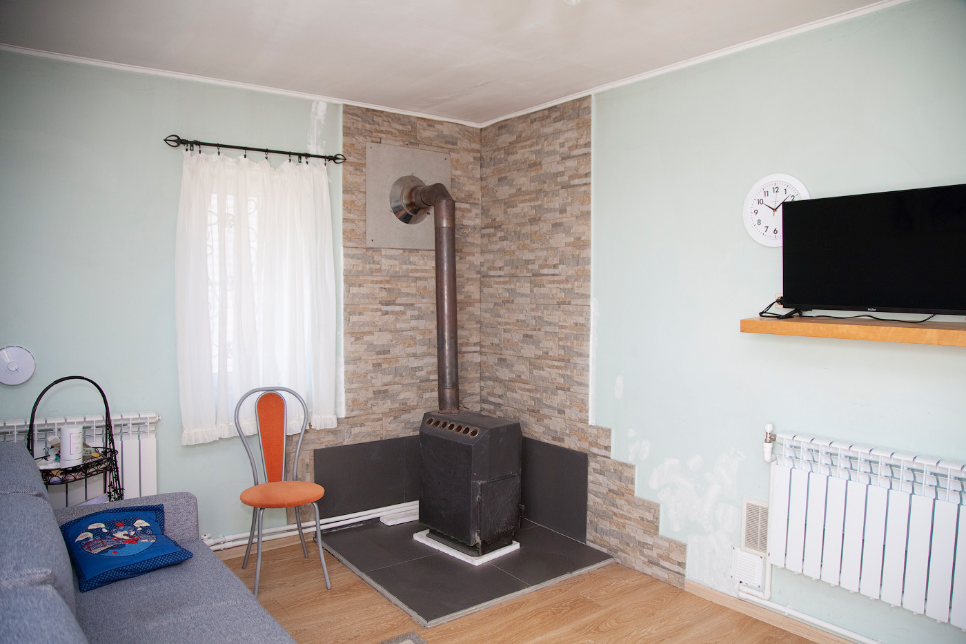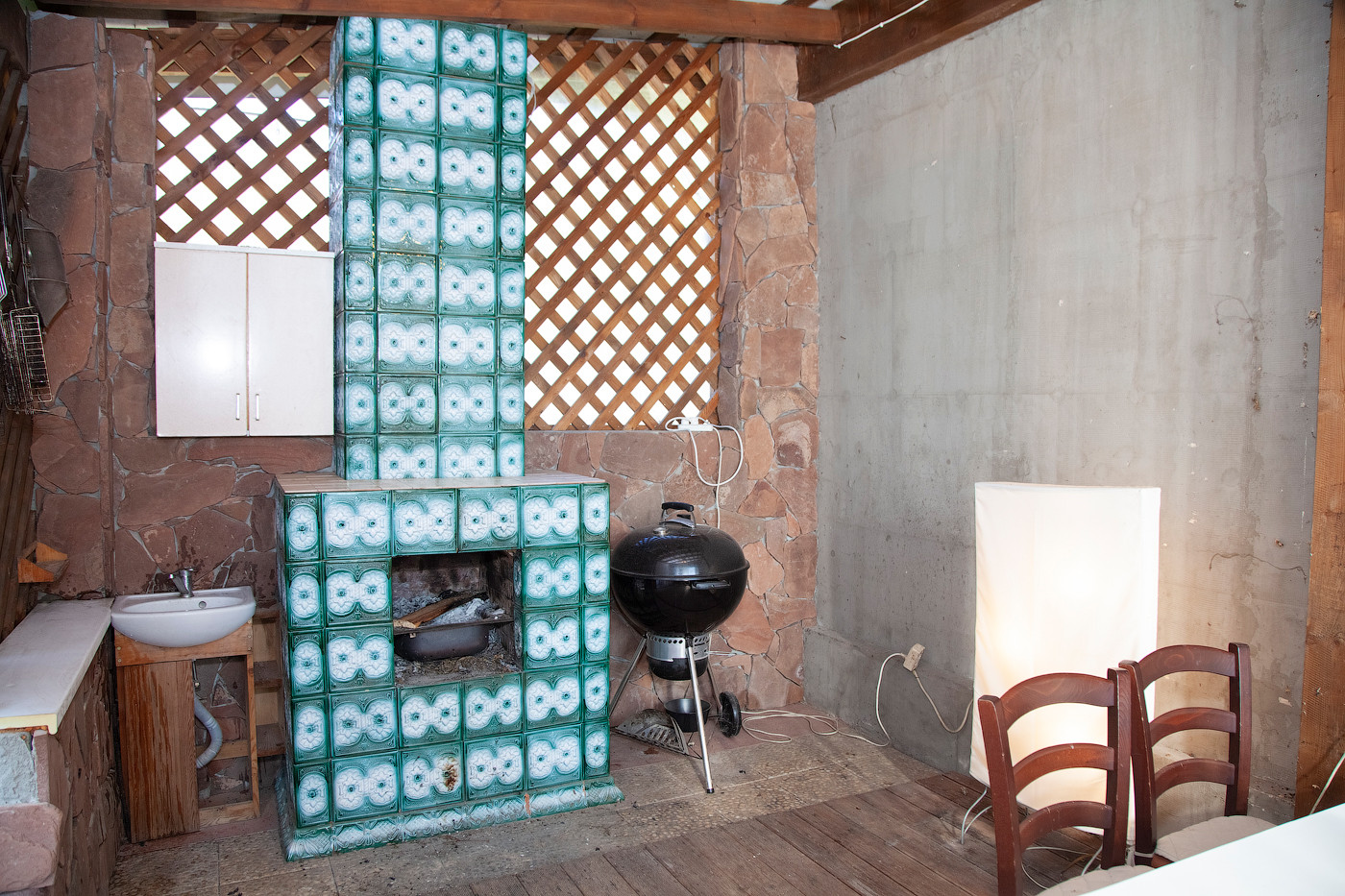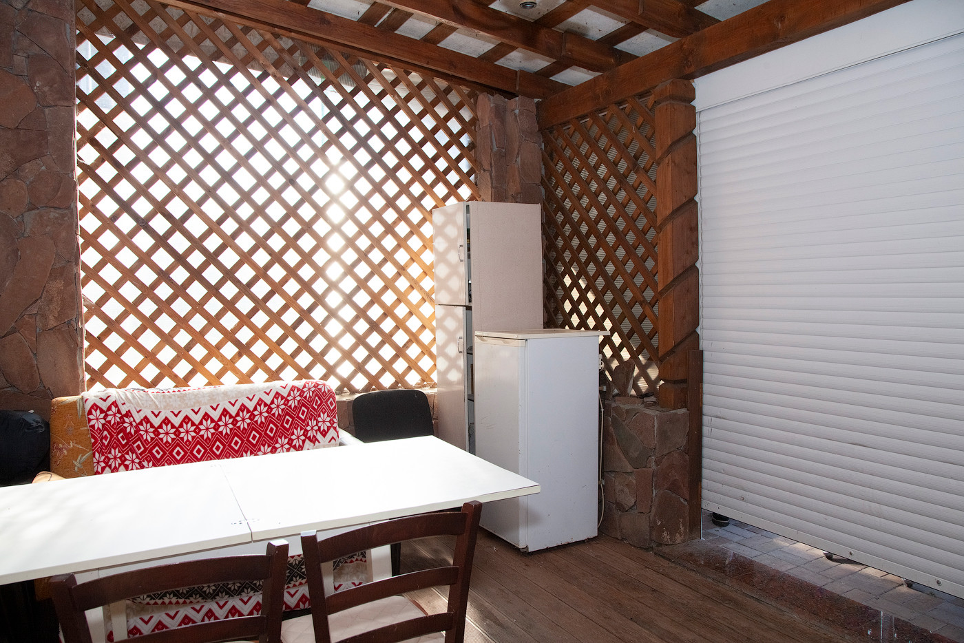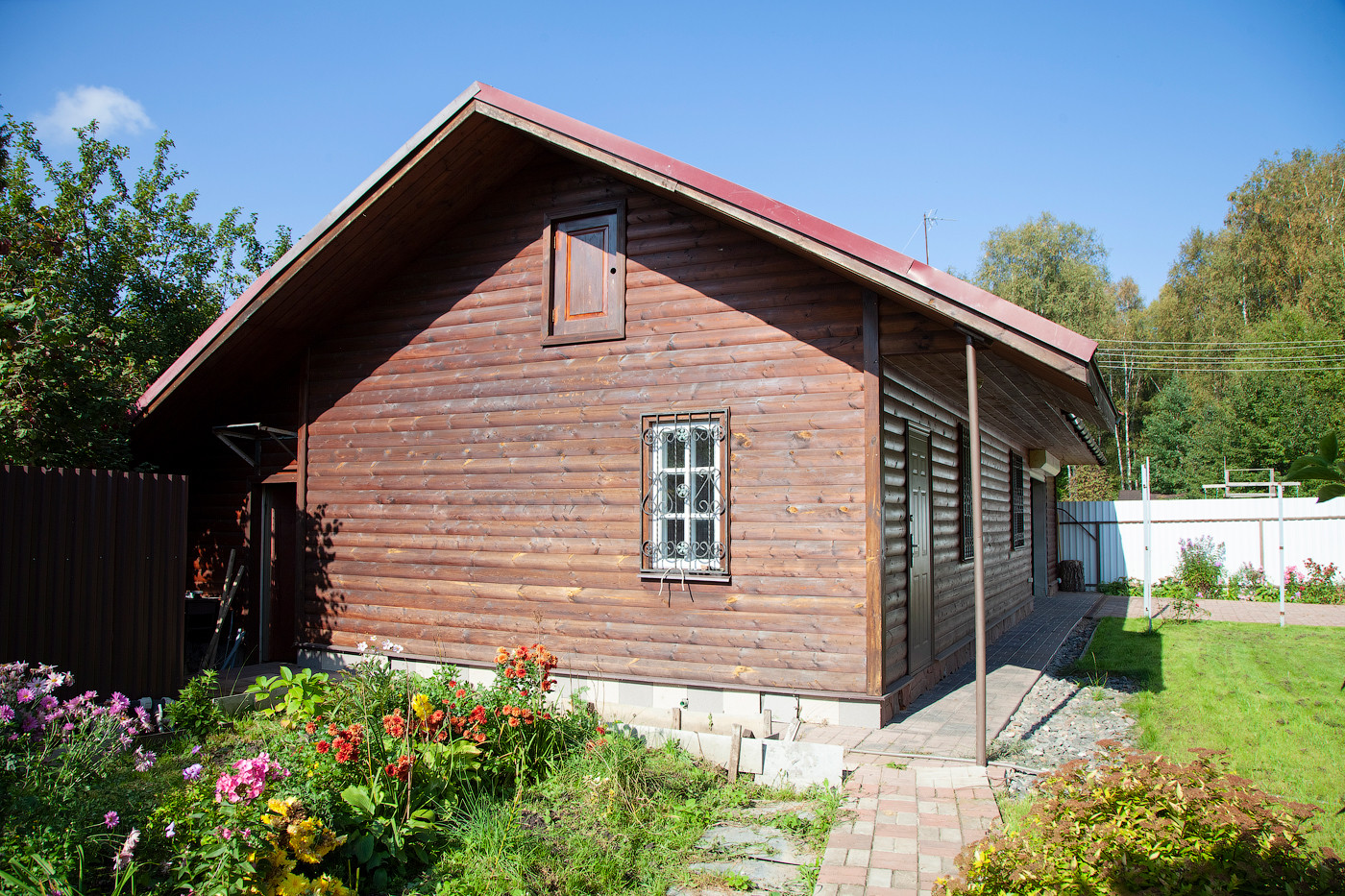 Также отдельное строение, в котором на первом этаже множество подсобных и хозяйственных помещений, а на втором этаже с отдельным входом есть изолированная уютная комната с мансардными окнами.