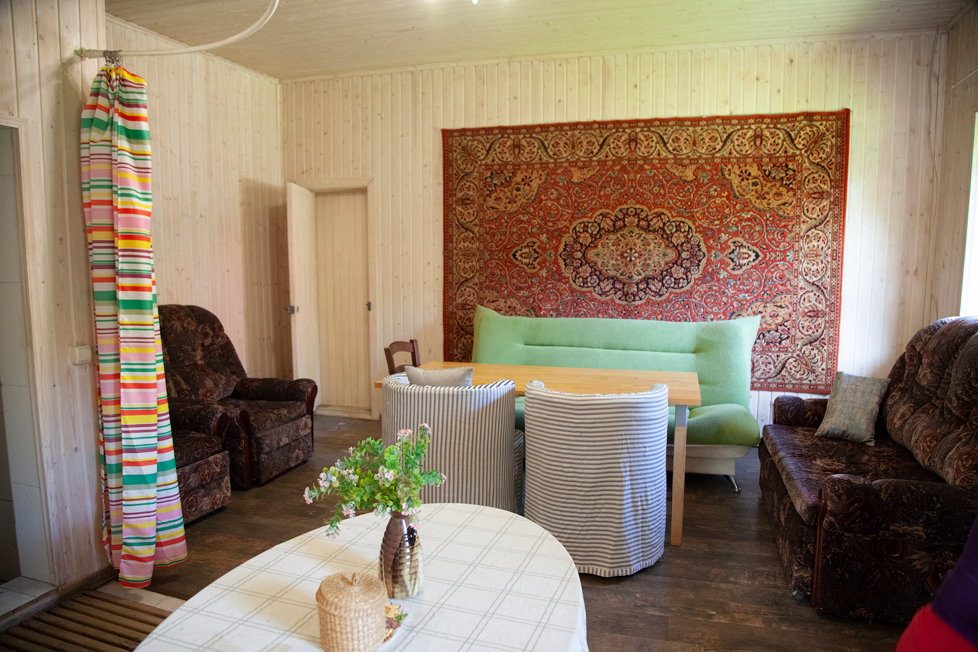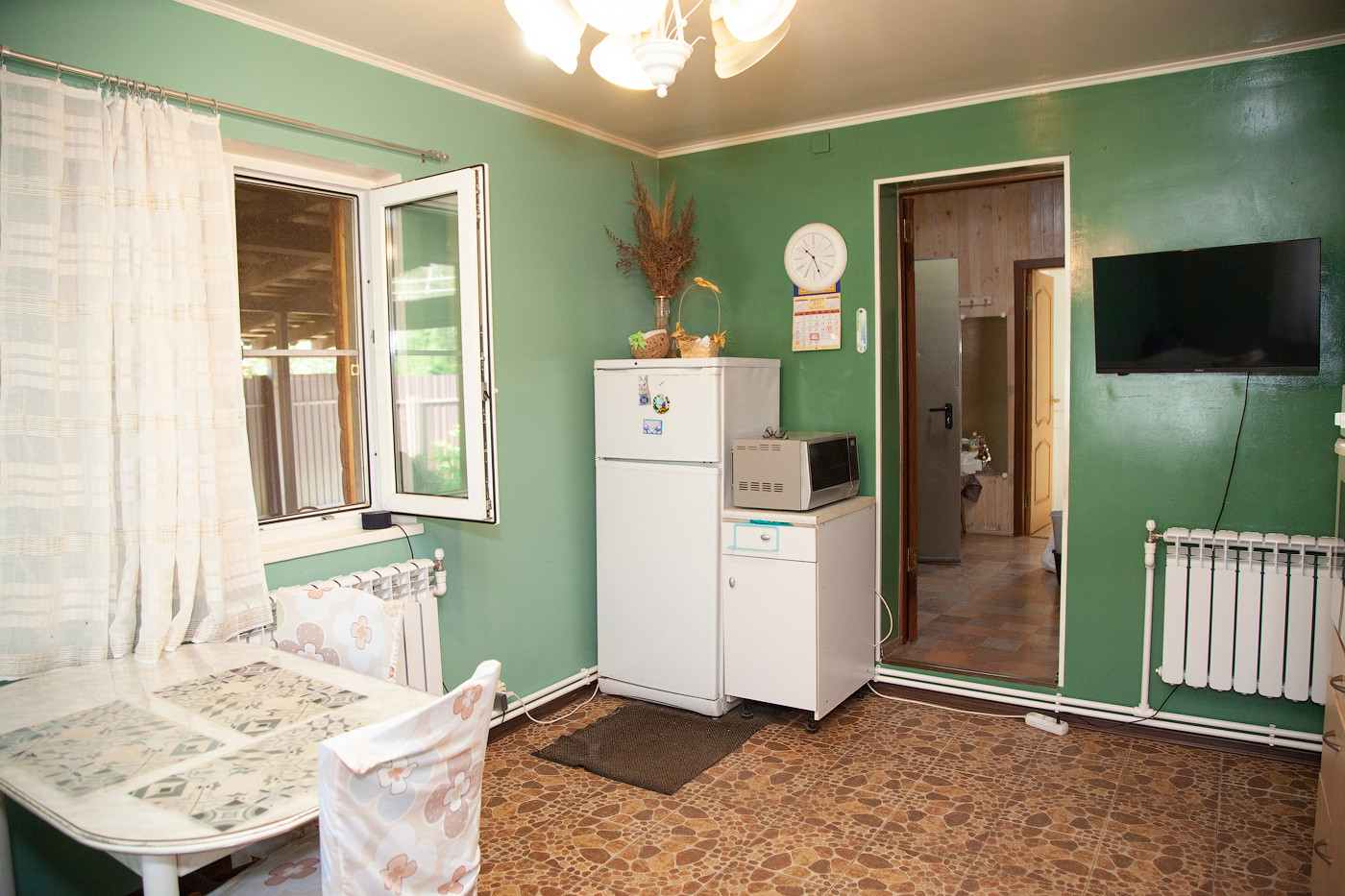 Перед входом в дом большая беседка с навесом. Просторный холл и прихожая.