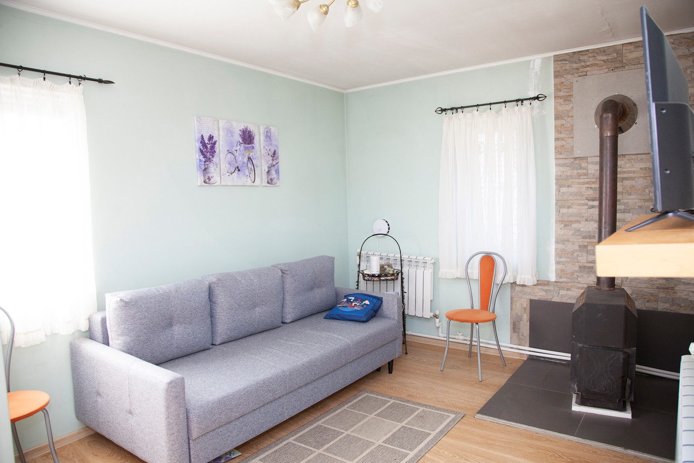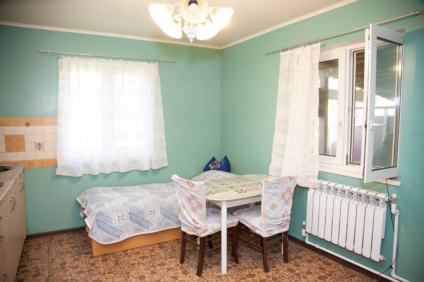 Первый этаж дома: две изолированные спальни, светлая кухня, санузел с душевой.