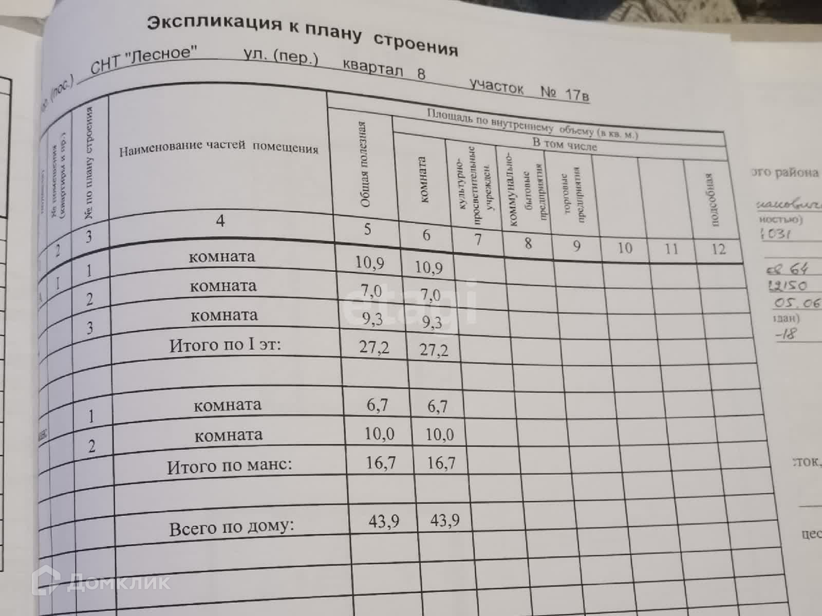Номер в базе: 10612580. Район: Лесное СНТ