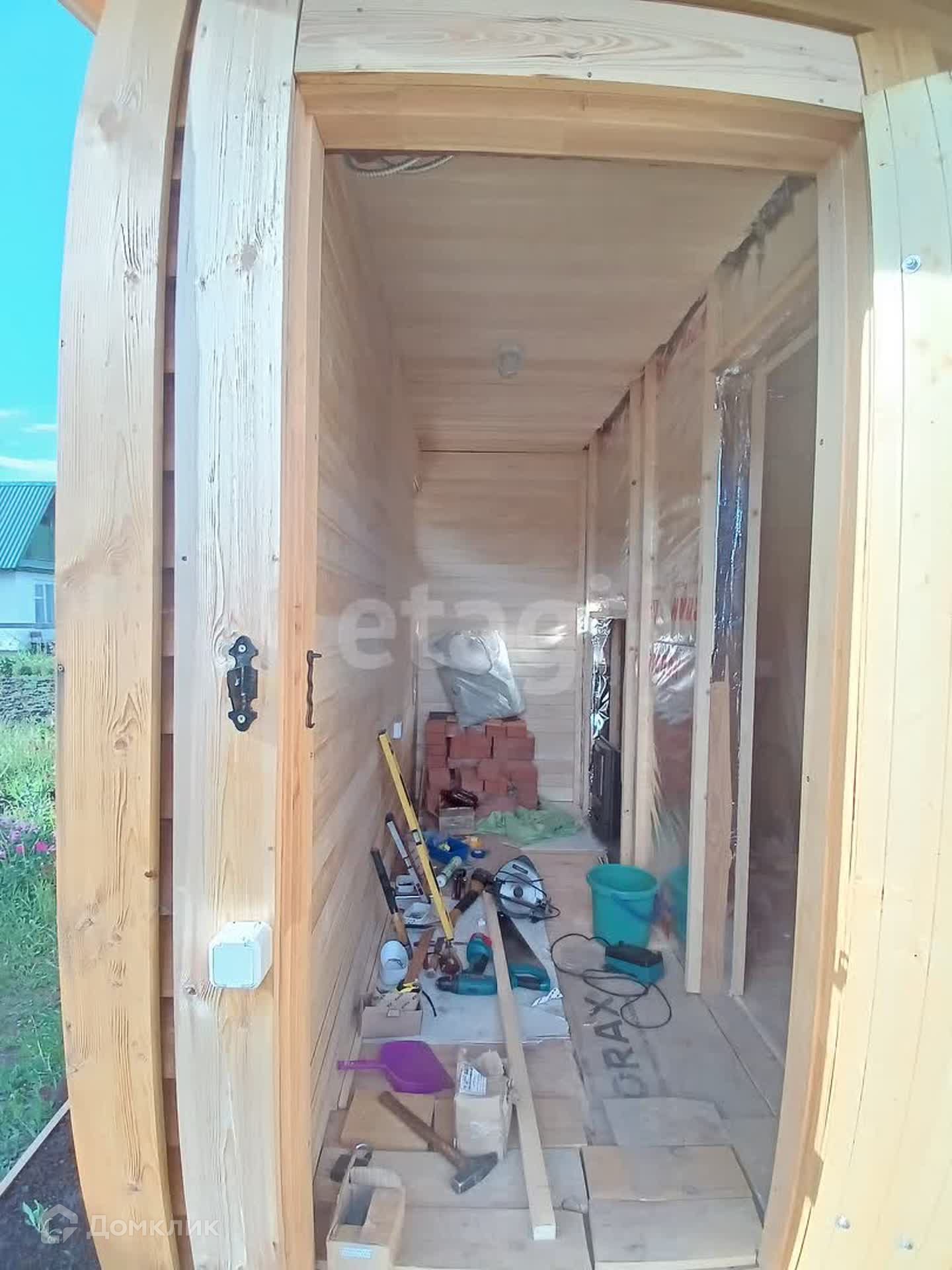 - Баня - 16 кв каркасная, обшита вагонкой, требуются небольшие доделки. Печь топи-мойся.