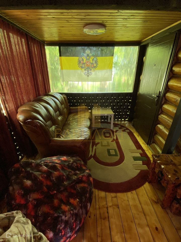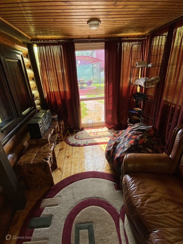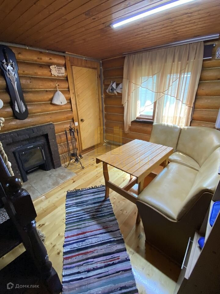 Домик выполнен из оцилиндрованого бревна  обит из нутри вагонкой .
