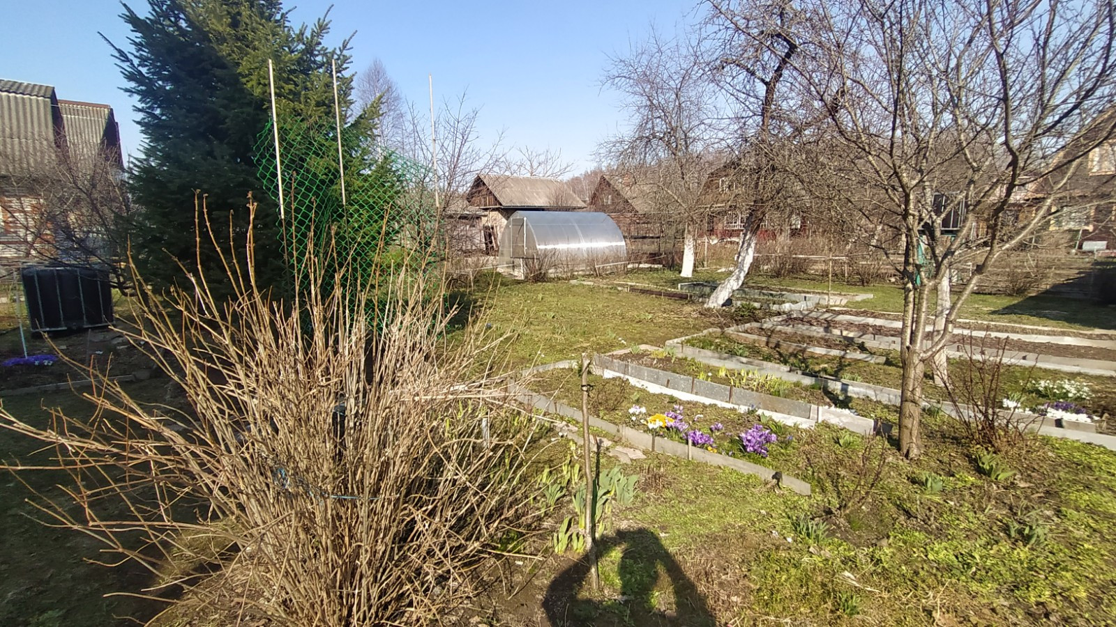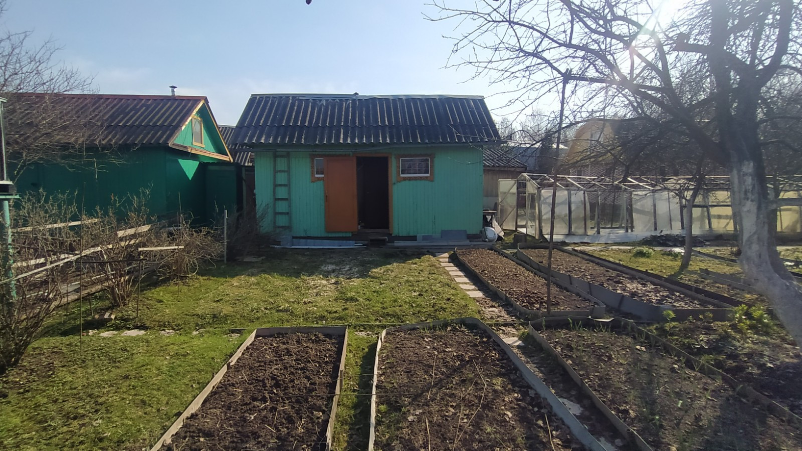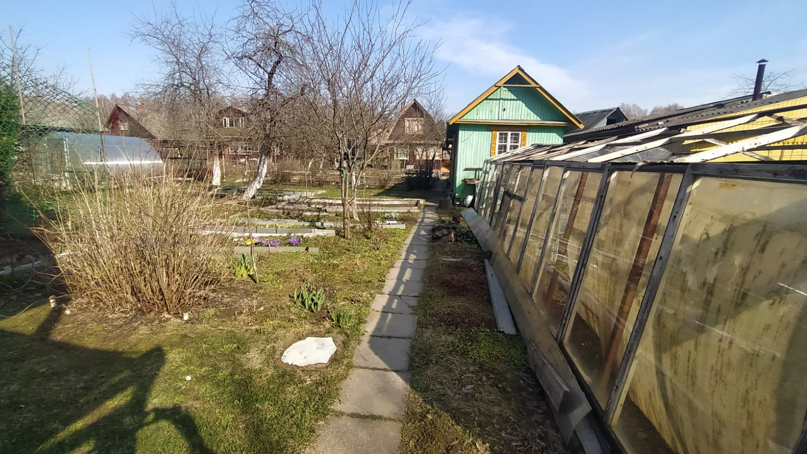Участок: Земли населенных пунктов. Участок ровный, прямоугольной формы, На участке растут яблони, слива, вишня, цветы. Есть большая теплица.