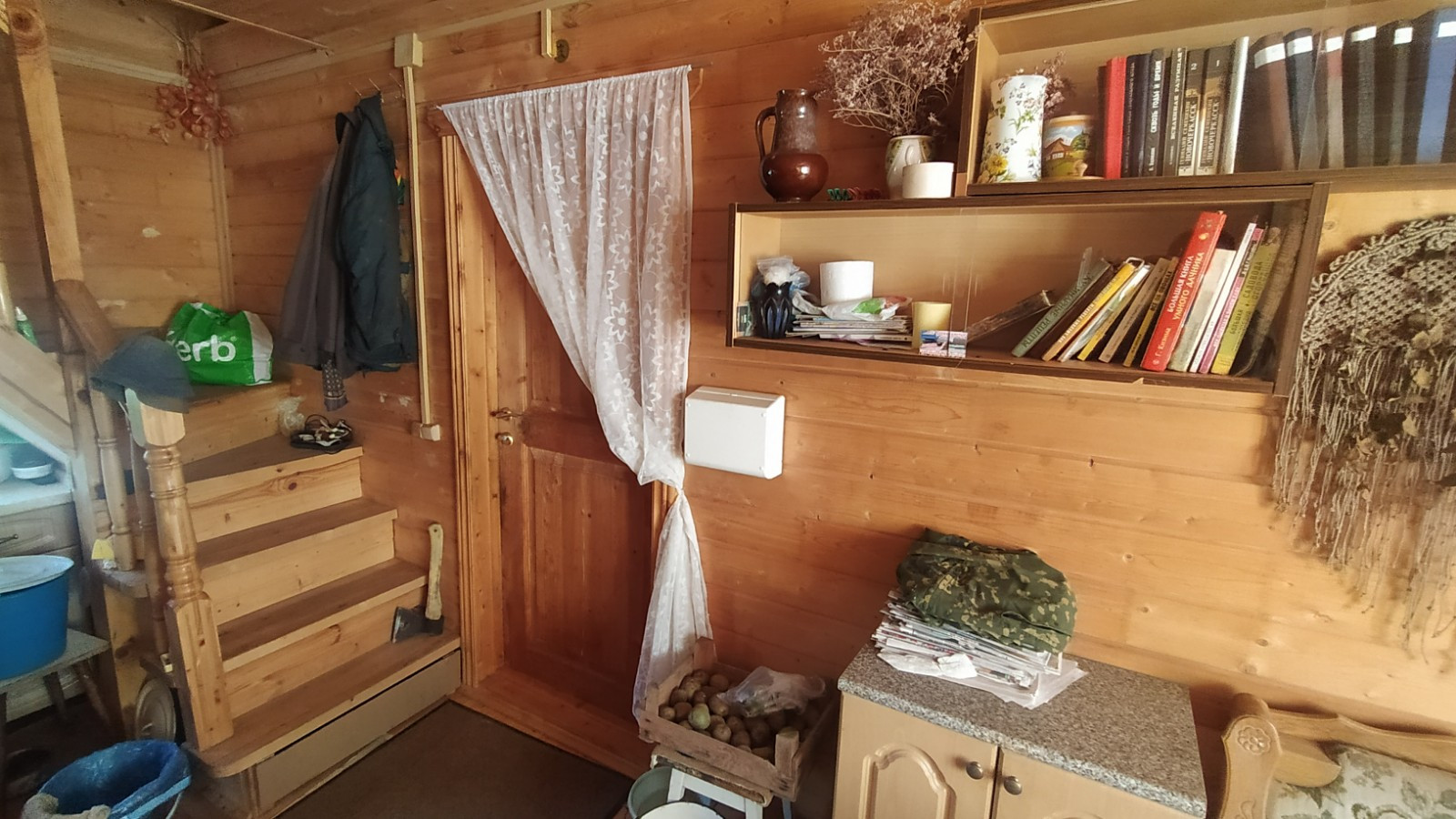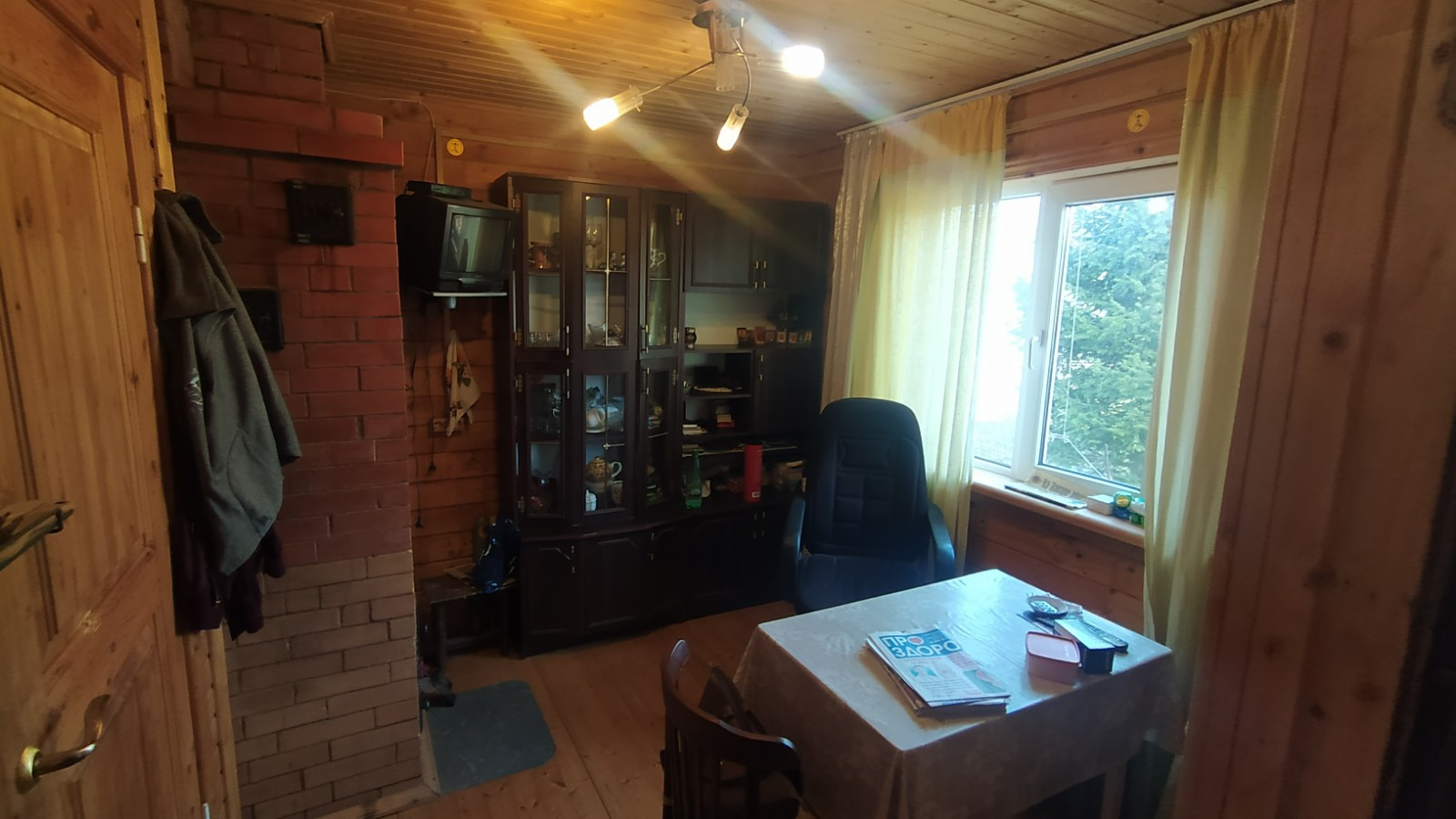 О доме: Дом построен из бруса, практически новый – 6 лет,  стоит на ленточном фундаменте, так же  пристроена веранда 8 кв.м. Дом полностью утеплен и обшит  внутри сайдингом. Крыша – металлошифер. На 1 этаже: 2 комнаты и кухня. Отопление – современной русской печкой. На 2 этаже: большая комната 26 кв.м. .