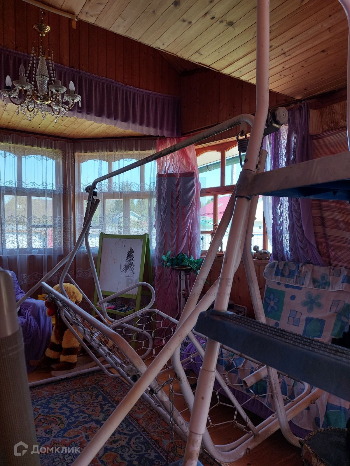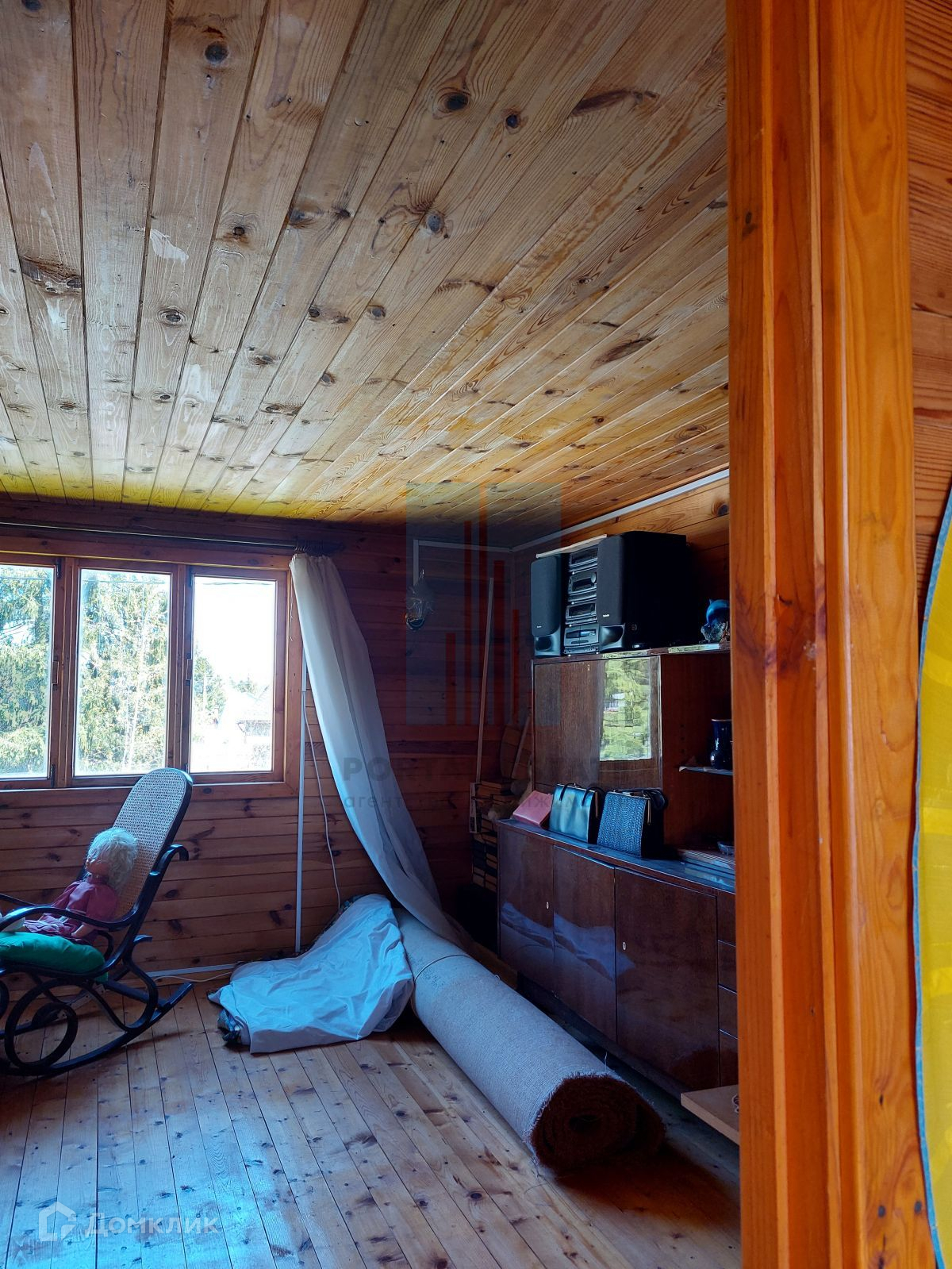 Тип строения – каркасно-щитовой с утеплителем, фундамент – ленточный (заглубление 1,5 м), крыша – металлопрофиль, окна – деревянные, полы – доска с утеплением 200 мм (покрытые лаком), деревянные межкомнатные двери.