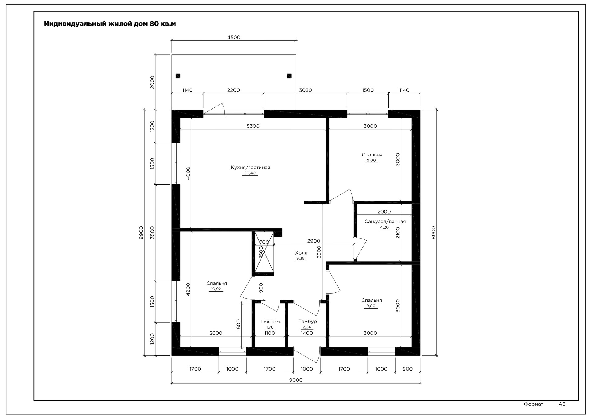 Общая площадь 80 м2