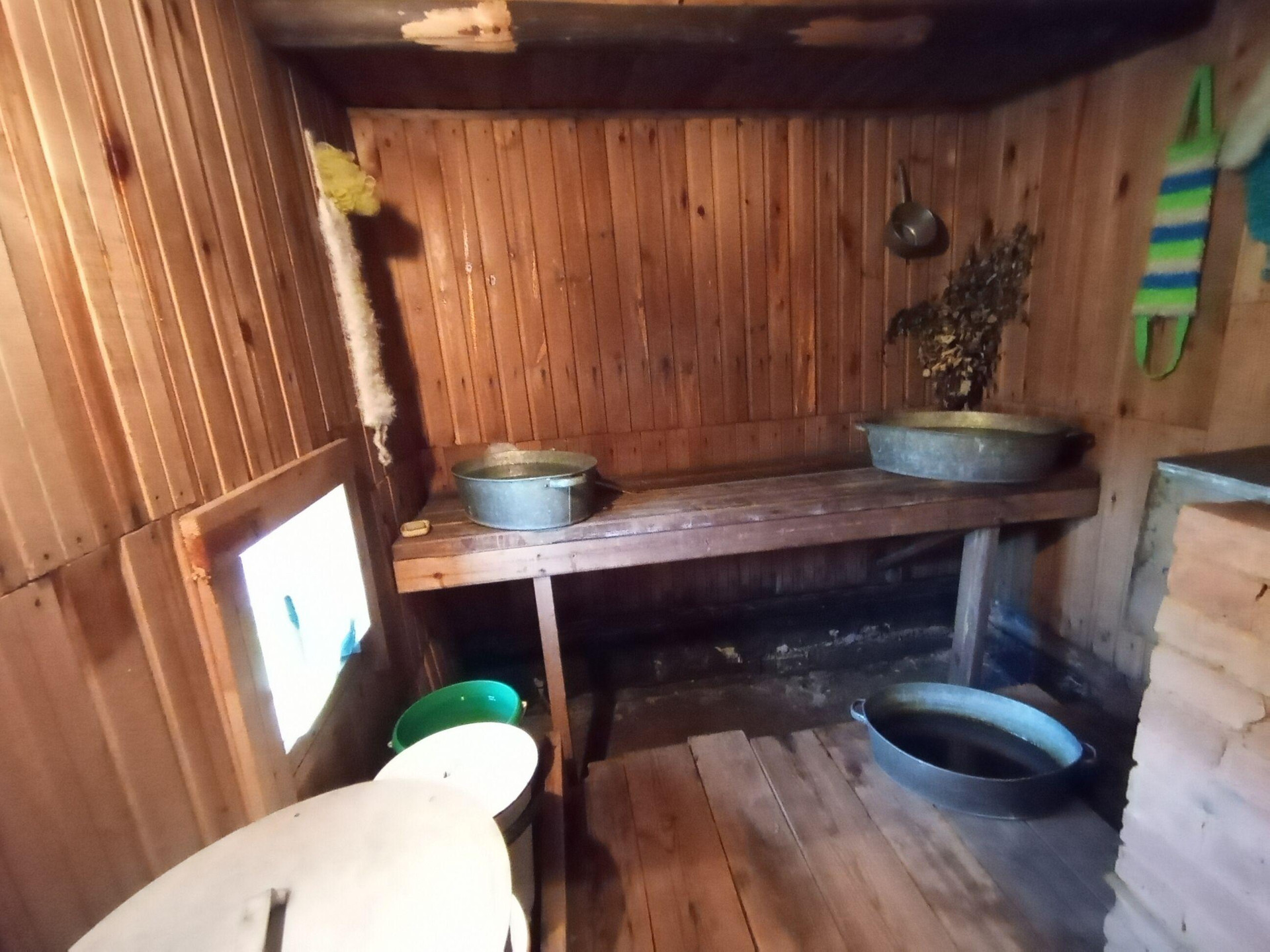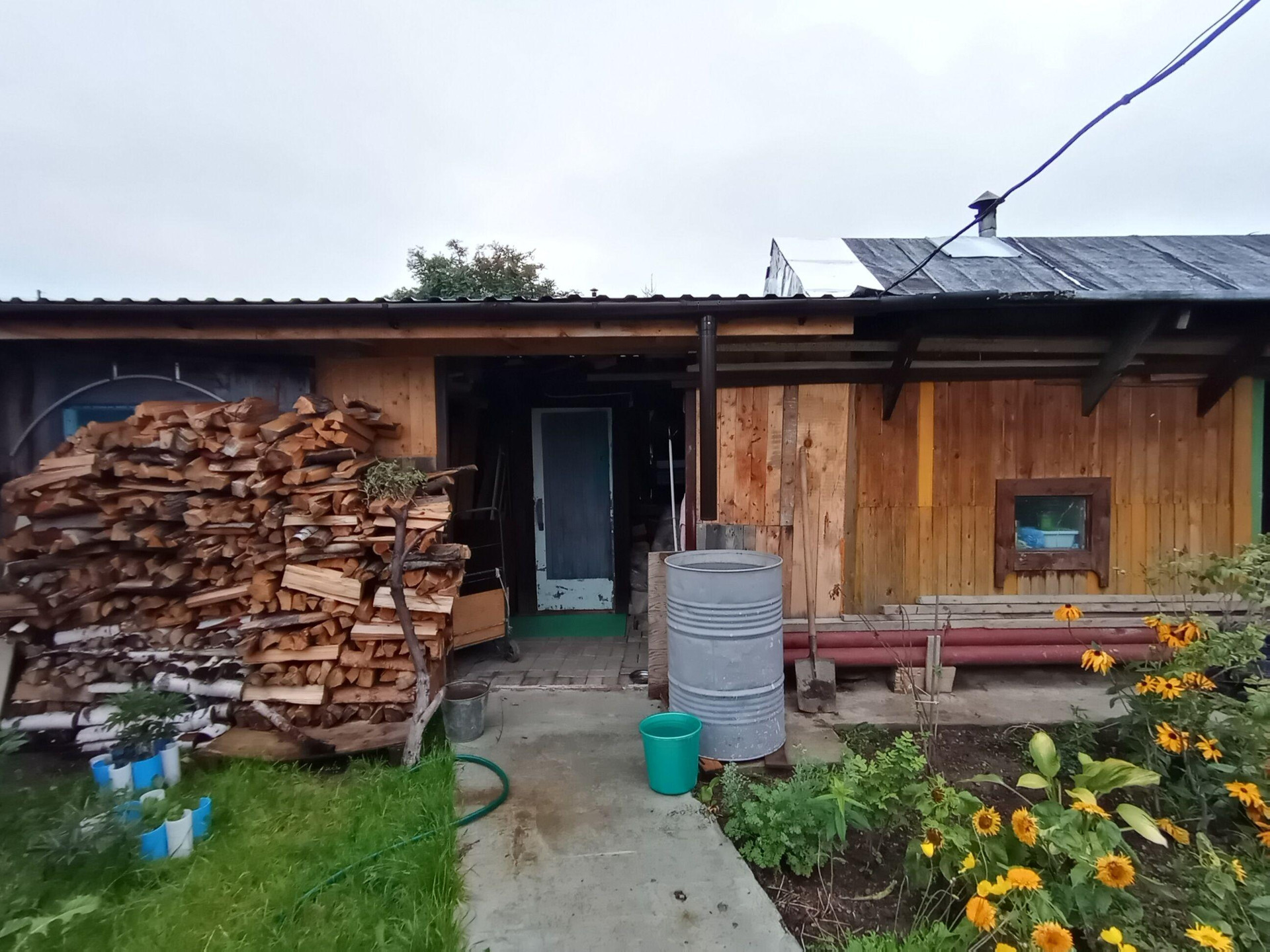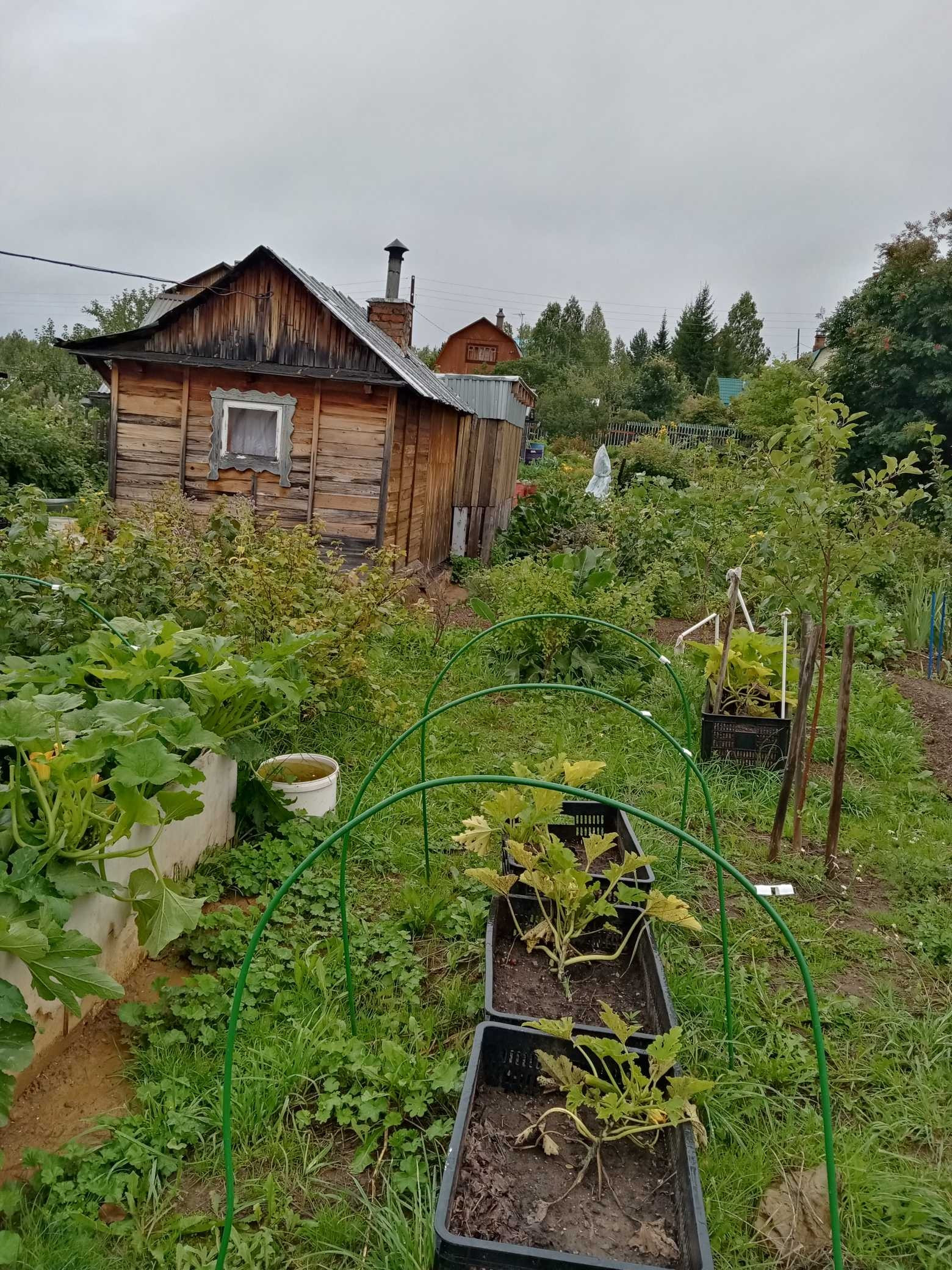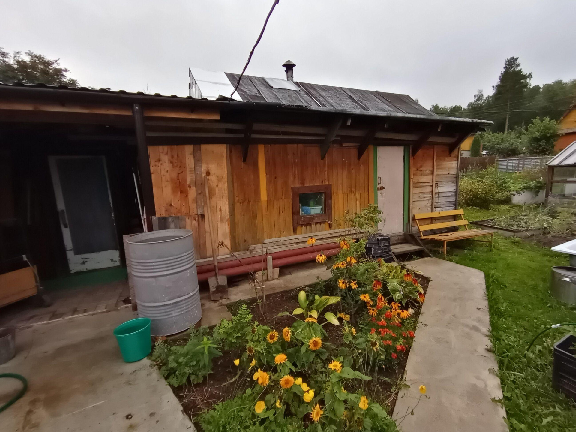 На территории есть два небольших сарая для хранения инструментов и дров, уличный санузел для биотуалета, баня, веранда. Сделана мангальная зона возле веранды.