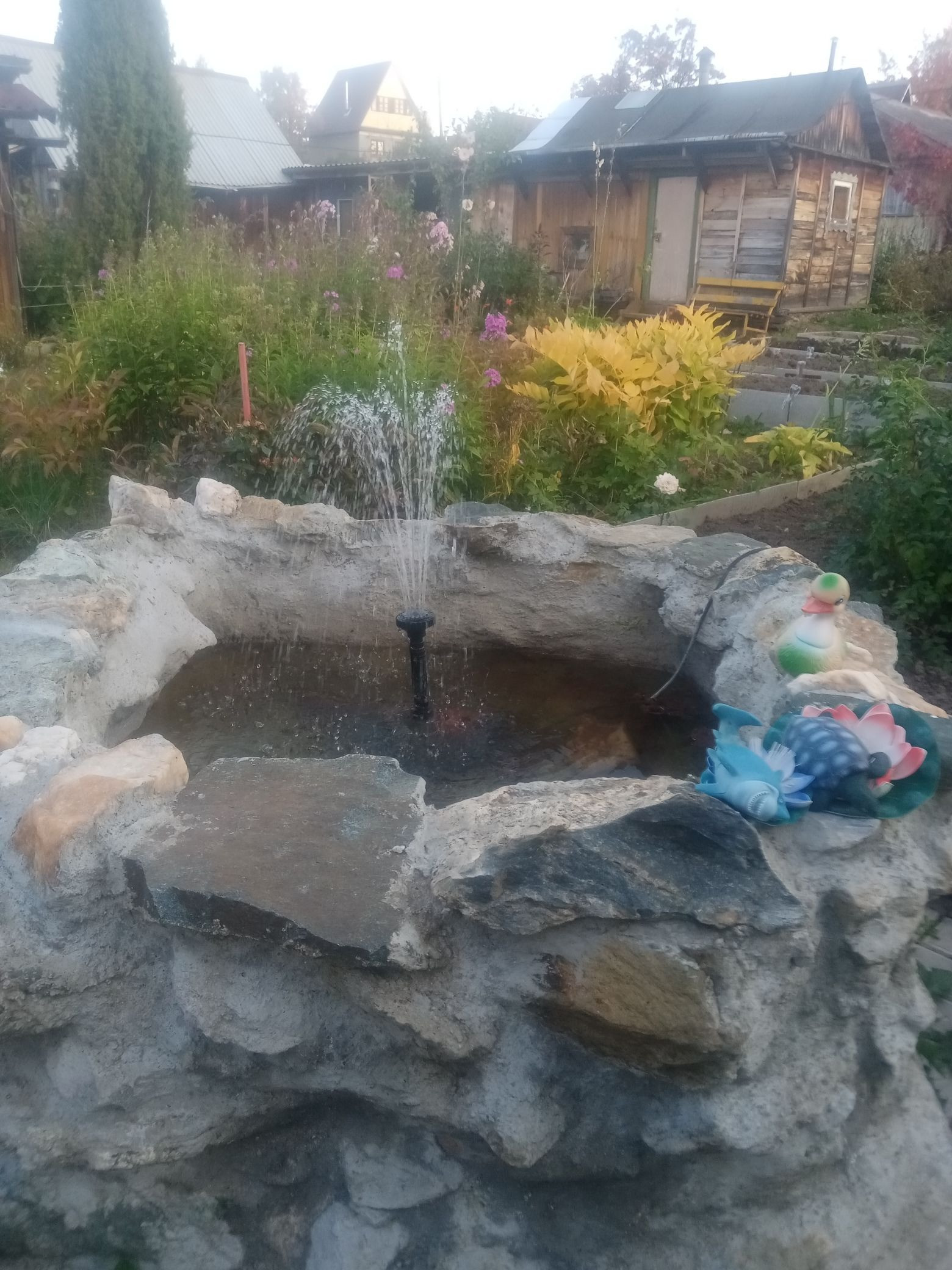 Дорожки от домика до веранды и бани залиты цементом.