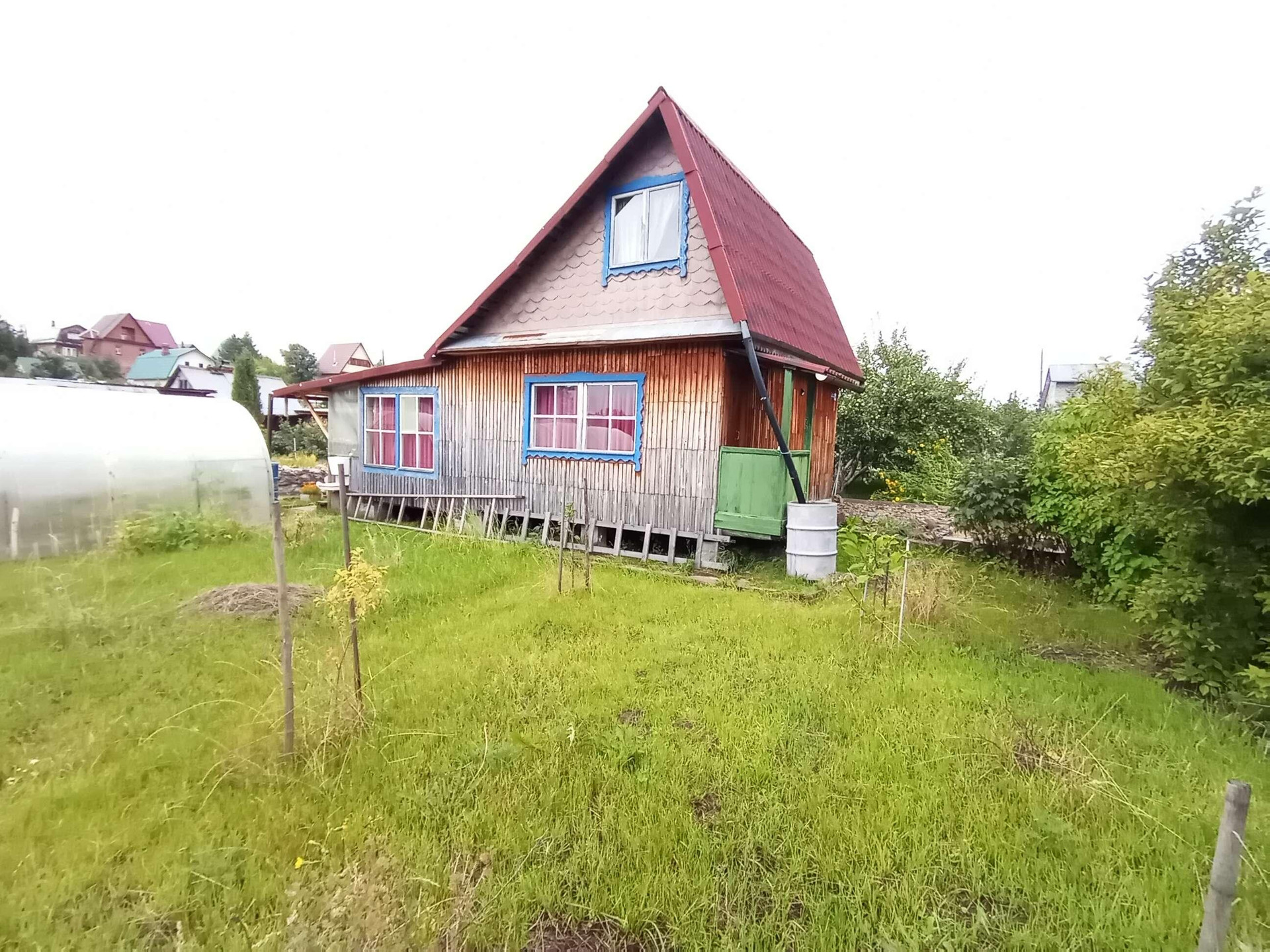 Домик сборно-щитовой, внутри дома выполнен качественный ремонт с использованием натуральных материалов обшит панелями МДФ (комната, коридор и летняя кухня). В комнате металлическая печь. Есть мансардный этаж.