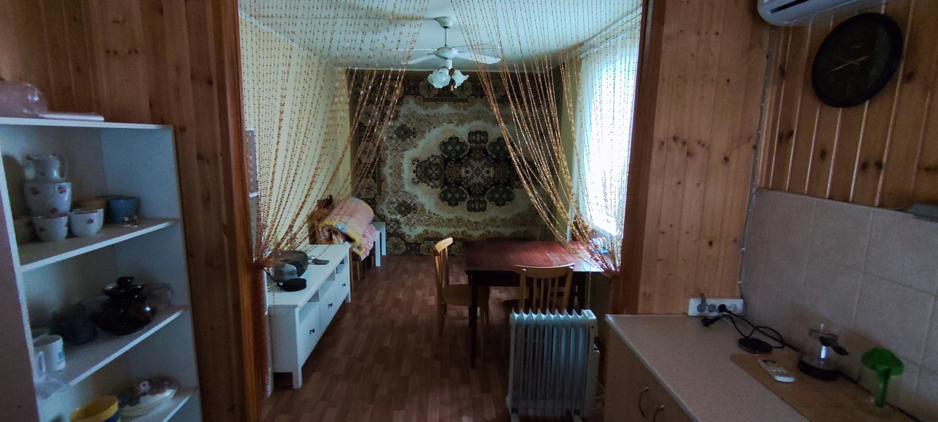 Первый этаж- прихожая, комната и большая кухня-гостинная.