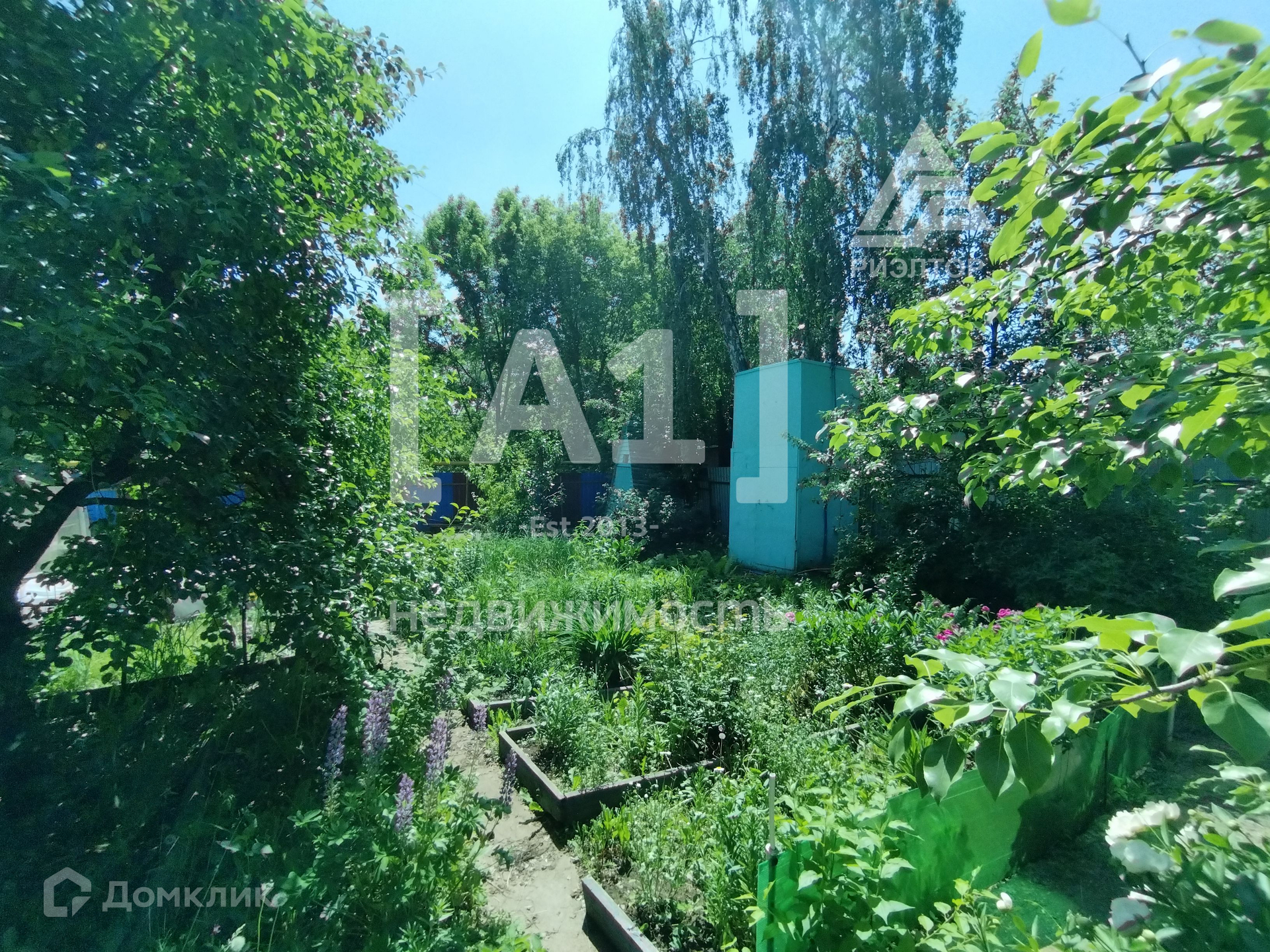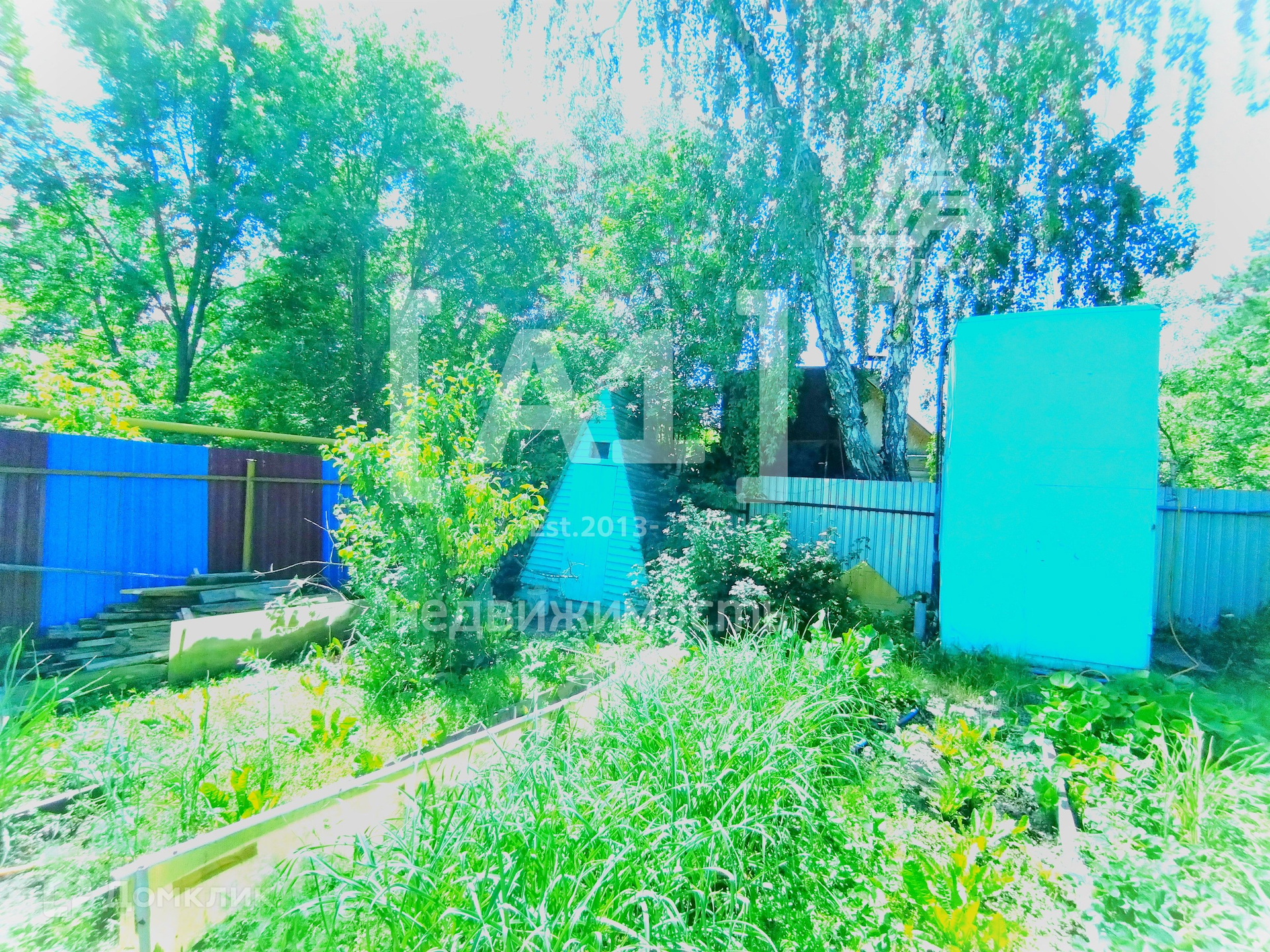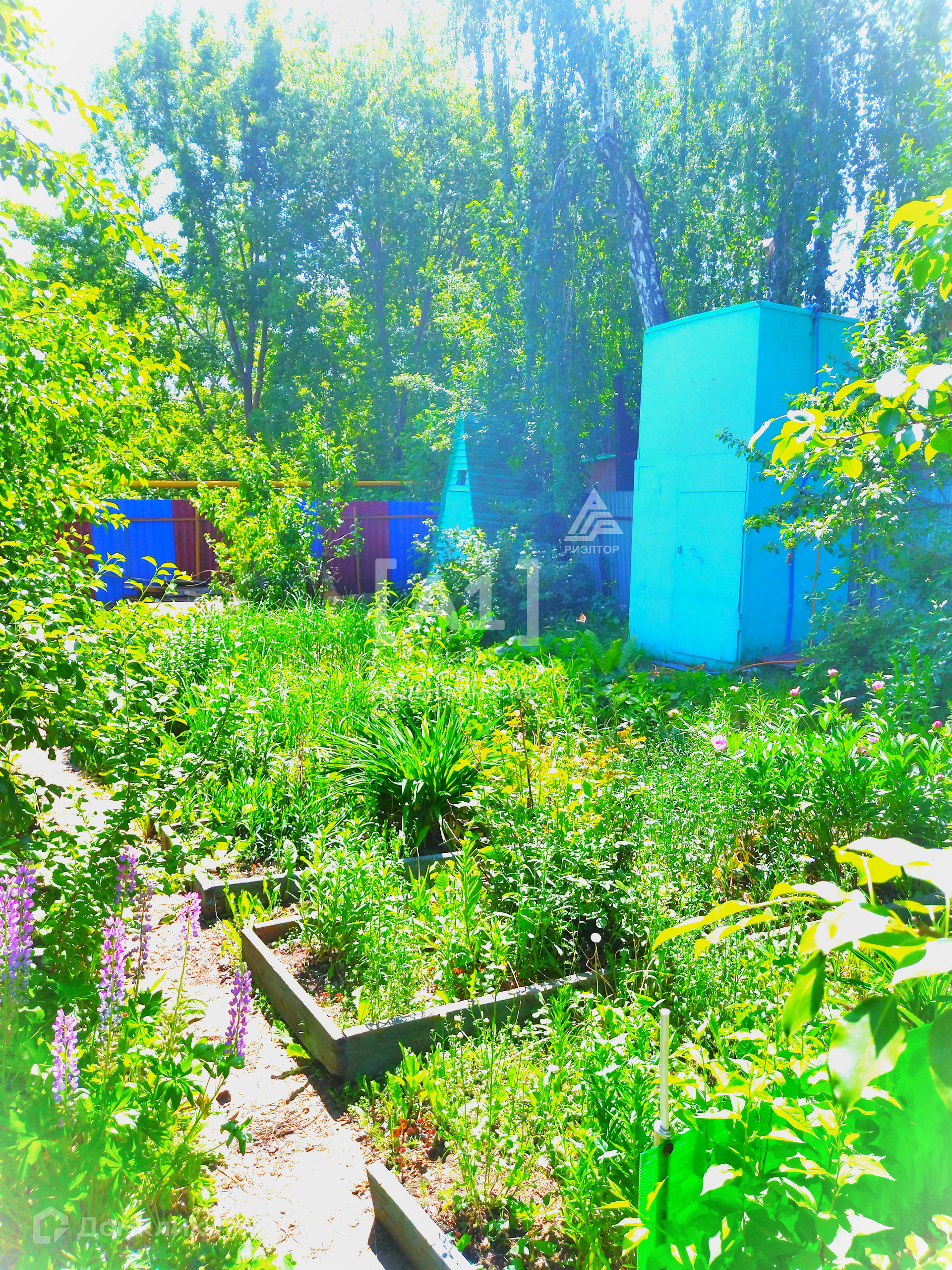 Участок  огорожен забором. Множество посадок, плодоносящих и декоративных растений.