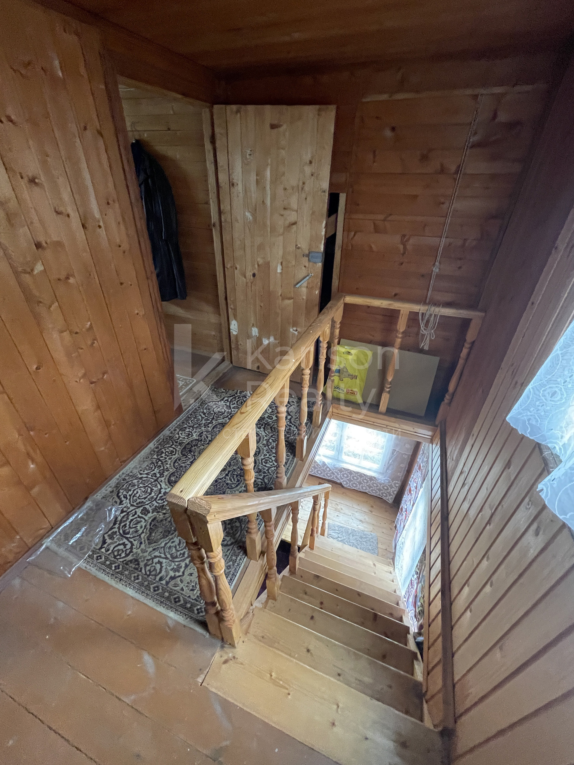 В доме два этажа. Первый этаж - холл , кухня, гостиная. Второй этаж - холл, спальня.