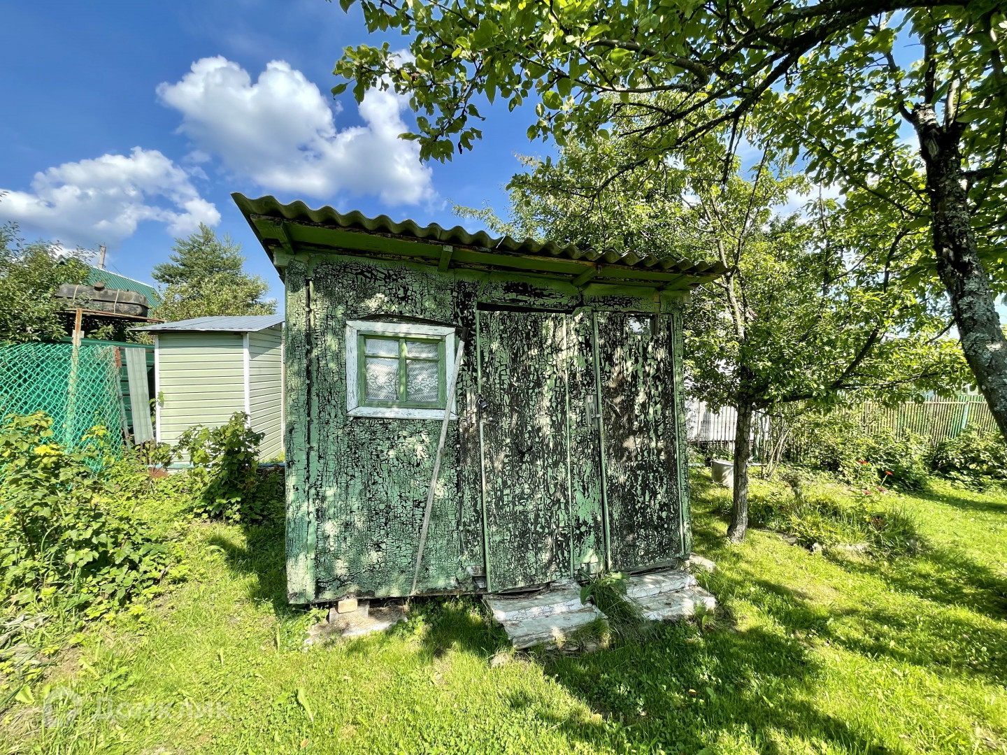 Земельный участок прямоугольной формы 7,67 сот. На участке садовый дом 50 кв. м., туалет, сарай.