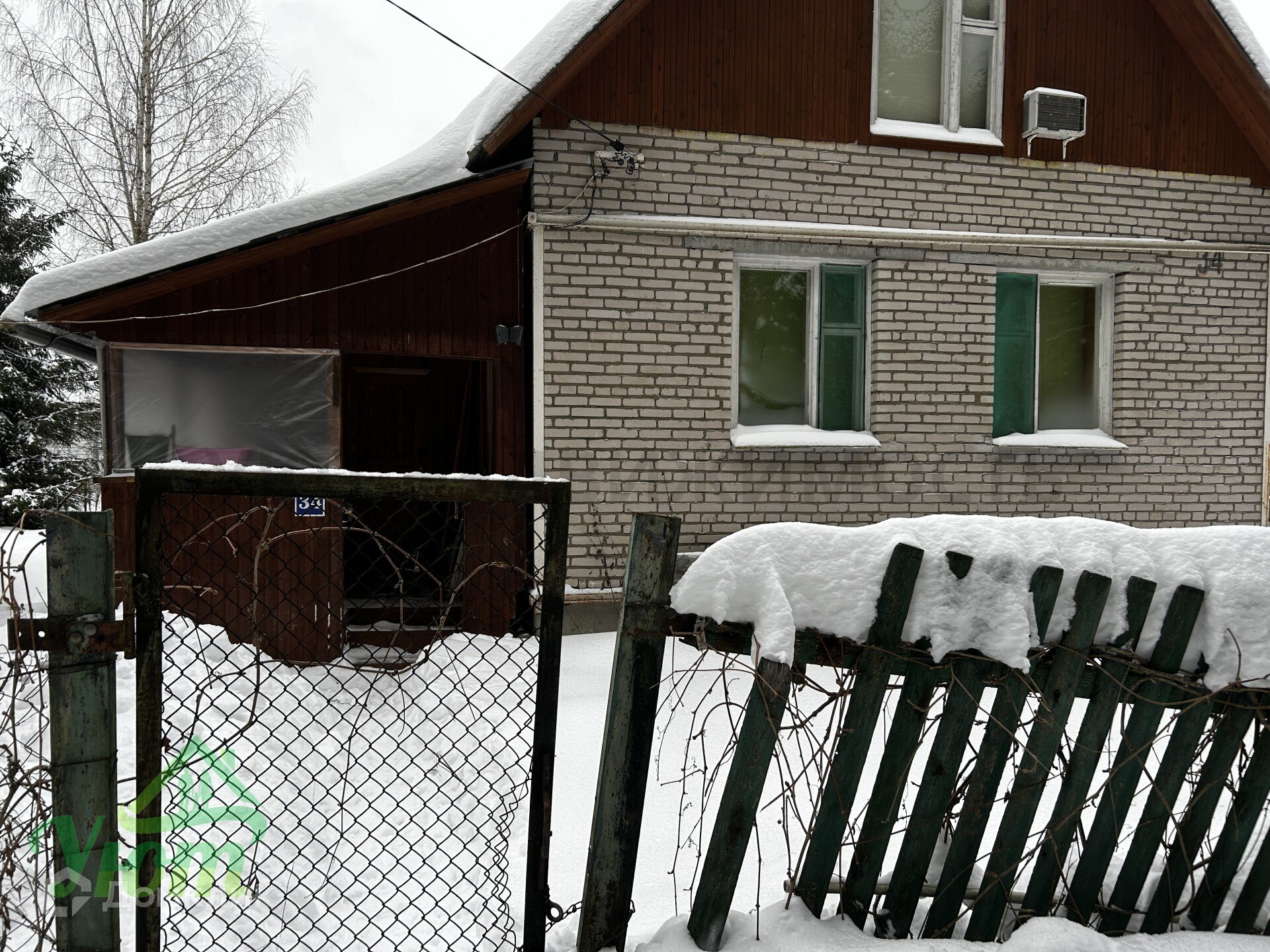где 1 этаж выполнен из кирпича, а второй из деревянных материалов.