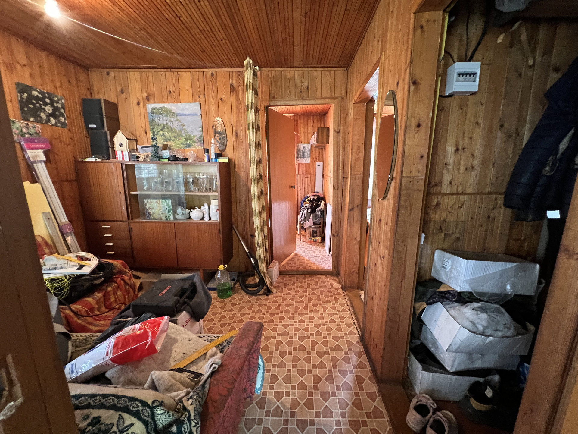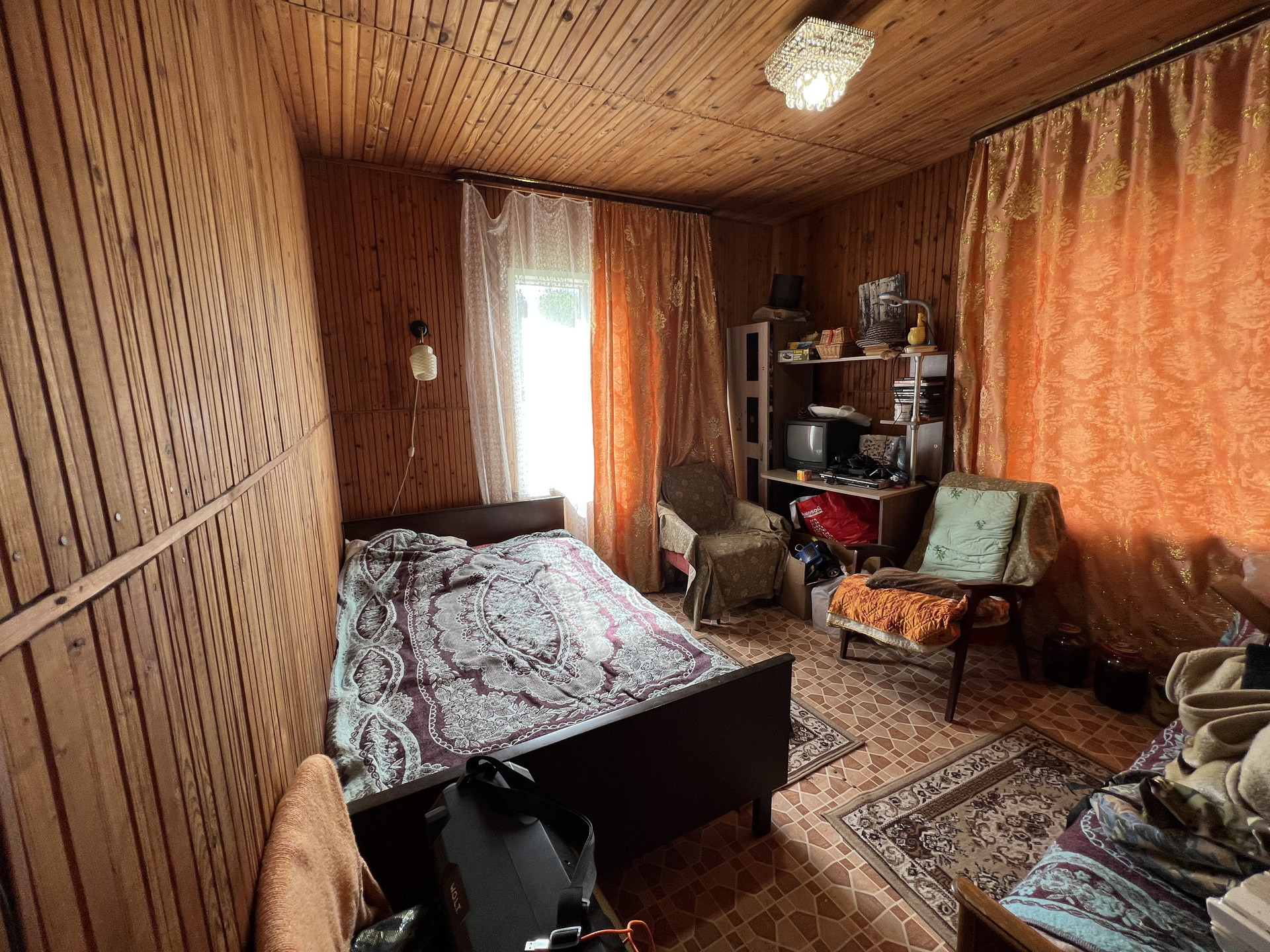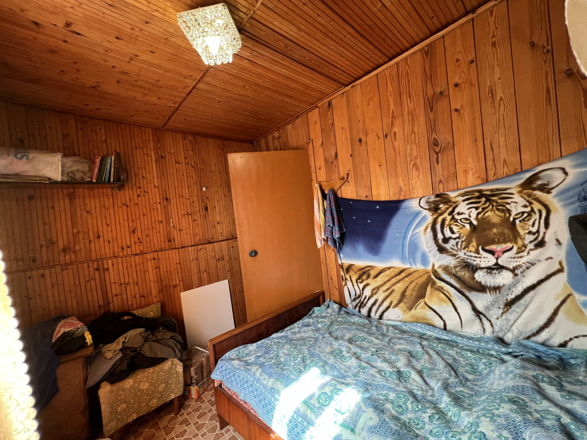 В доме 2 спальных комнаты+ одна проходная, кладовая, большая кухня- терраса.