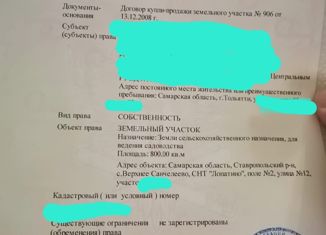 СНТ Лопатино массив номер 1 участок 1103. 20 улица, вода, свет есть,забор с двух сторон с зади и справа, документы есть кадастровый номер 63:32:0503008:3114. |