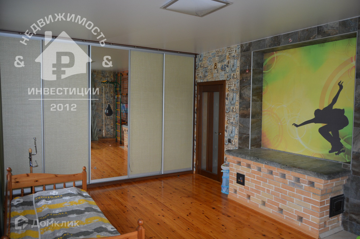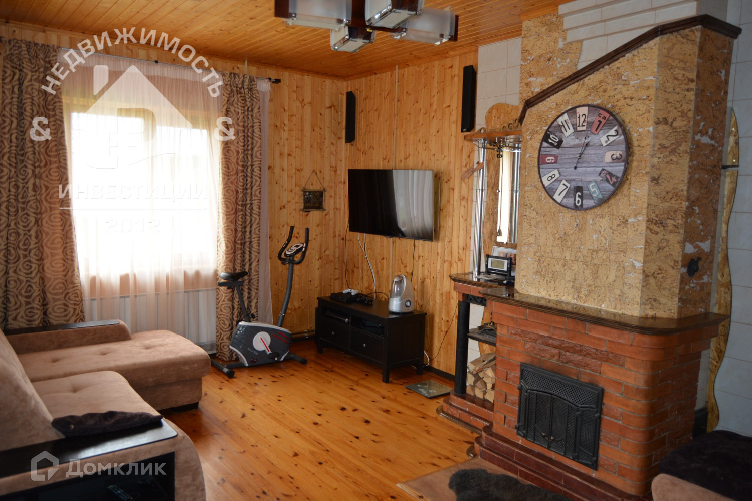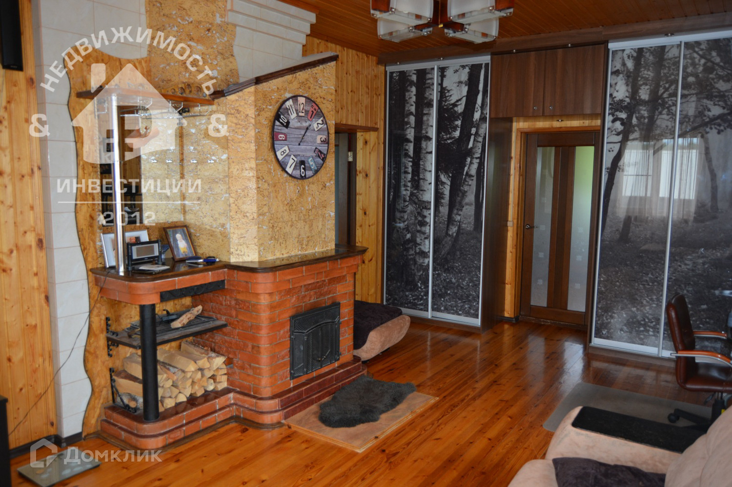 · просторная гостиная 22,1 м², с двумя встроенными шкафами и дровяным камином;