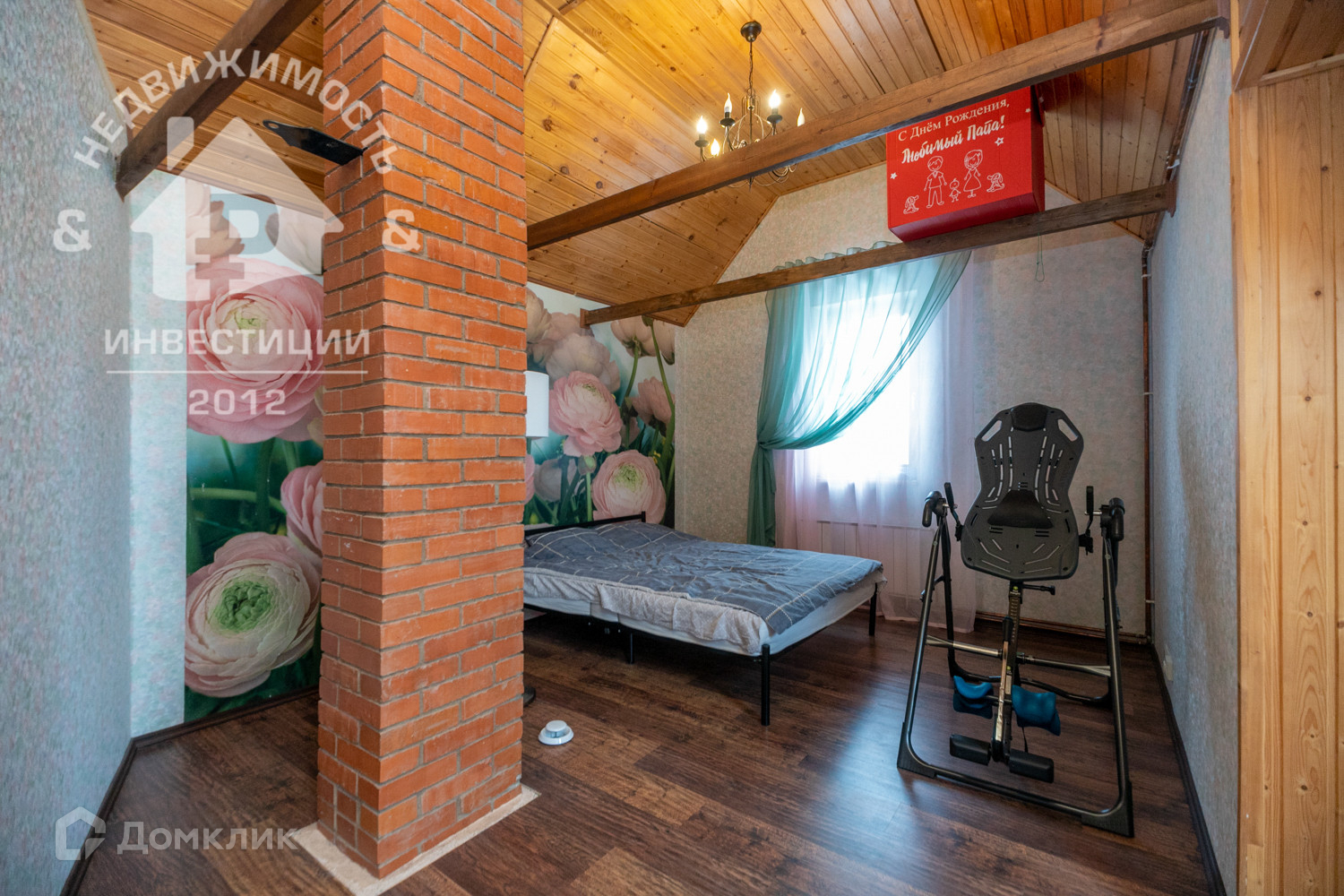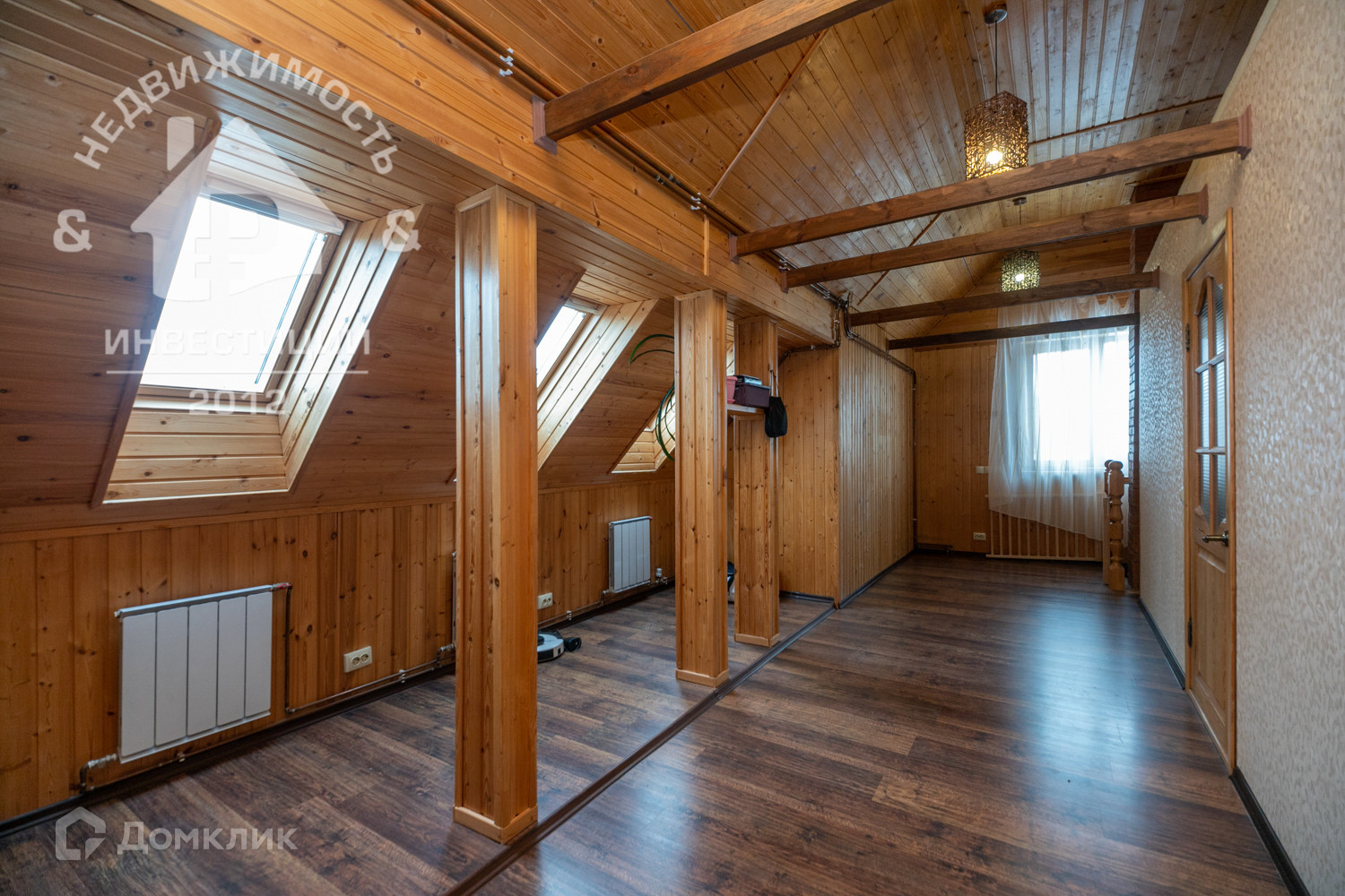 · просторная комната 25 м² с 5 мансардными окнами и потолком 3,8 м под крышу;