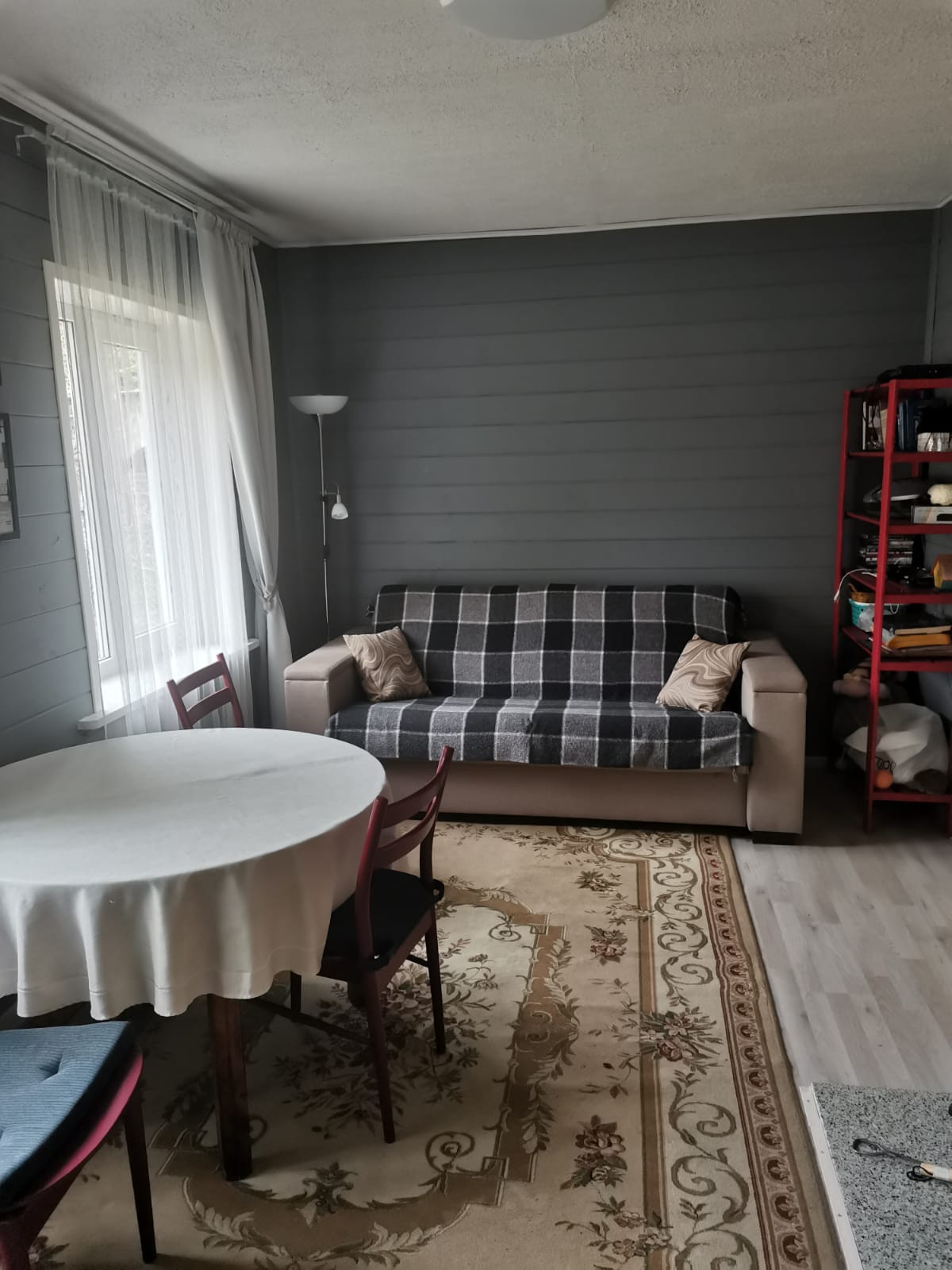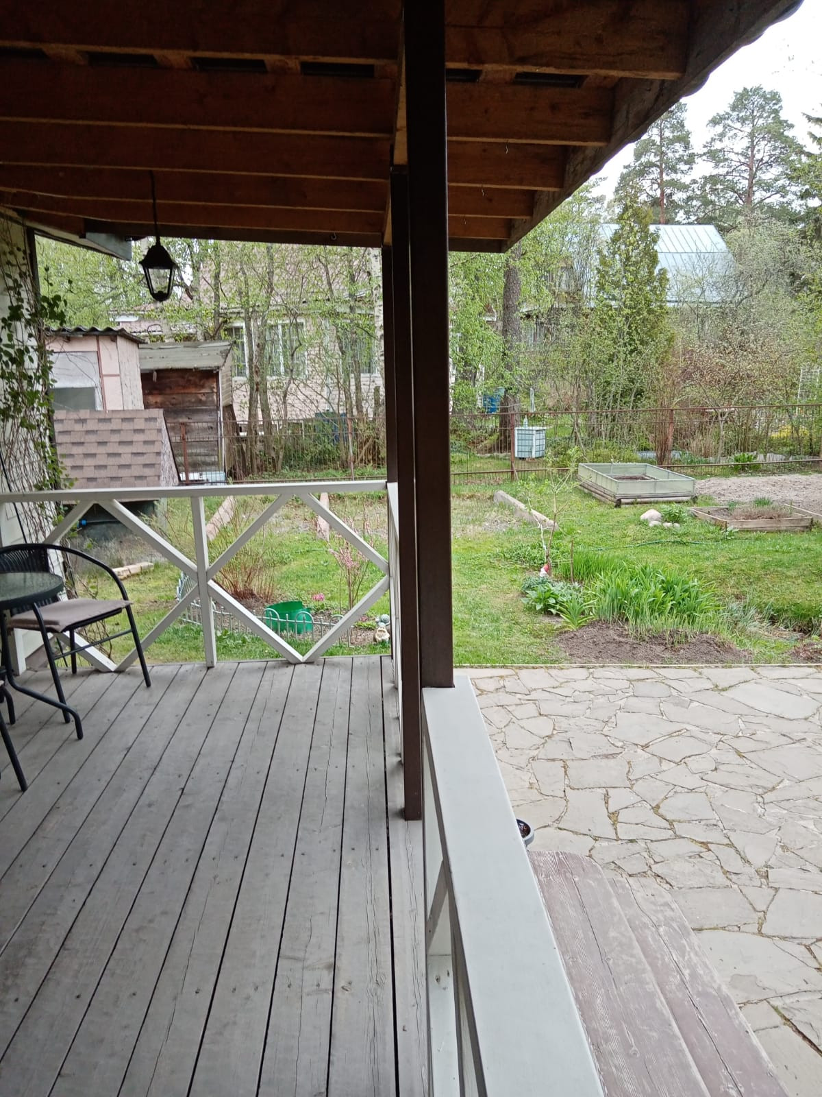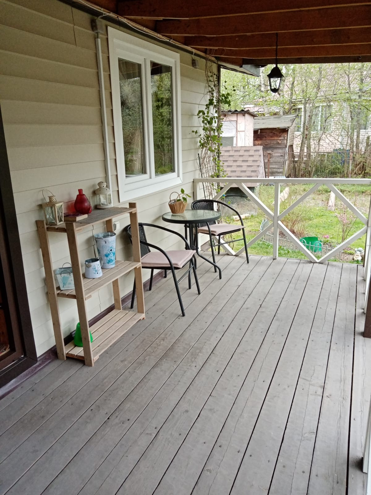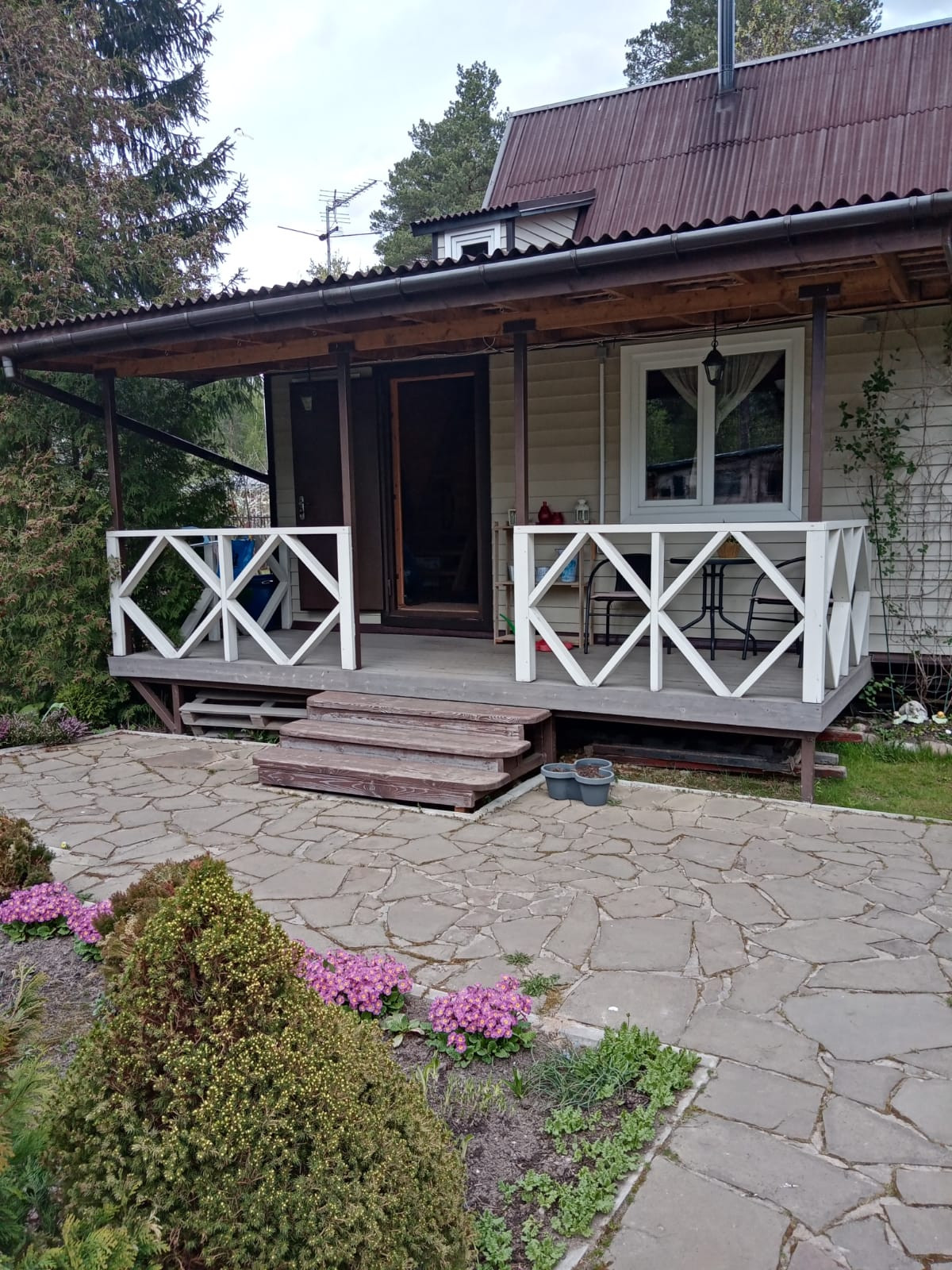 + Общая площадь = 54,6 кв. м по документам ( в 2018 году был сделан капитальный ремонт первого этажа дома , переделана и увеличена веранда. Площадь увеличилась до 60 кв.м). Новая веранда установлена на сваи.