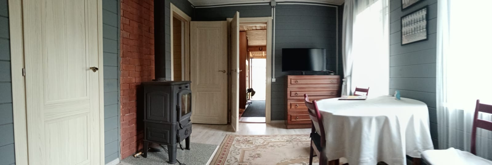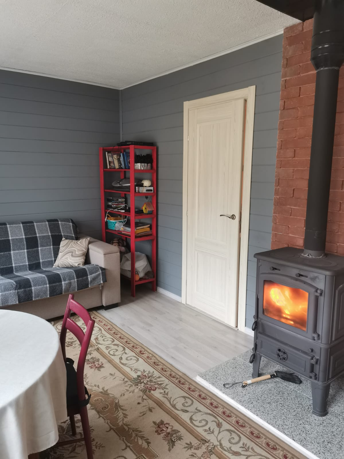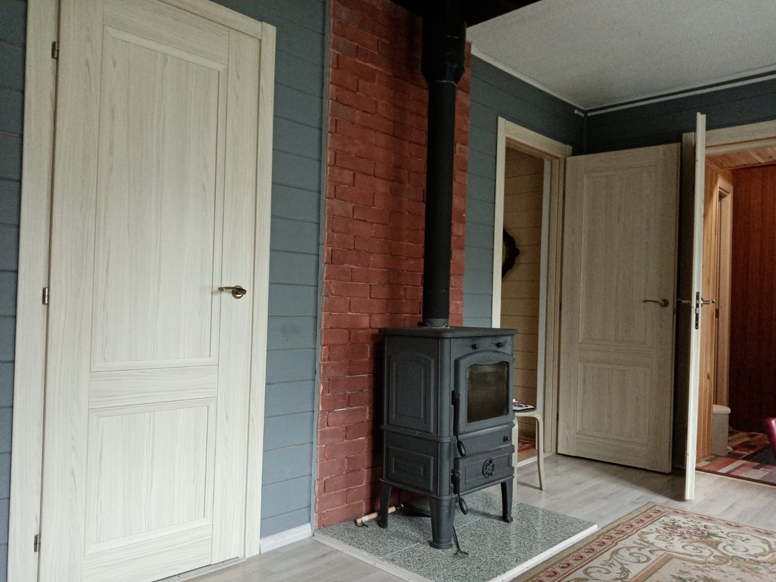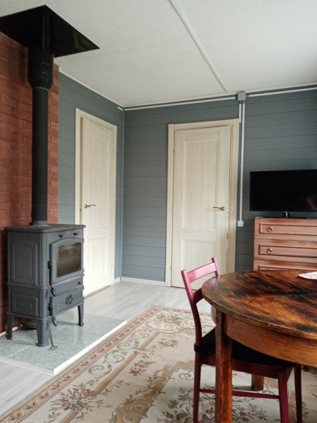 + Отопление - печь ( производство Чехия со стальной черной эмалированной трубой) с зоной обогрева 100 кв.м за 20 минут. На втором этаже инфракрасный обогреватель, на веранде тепловой обогреватель.