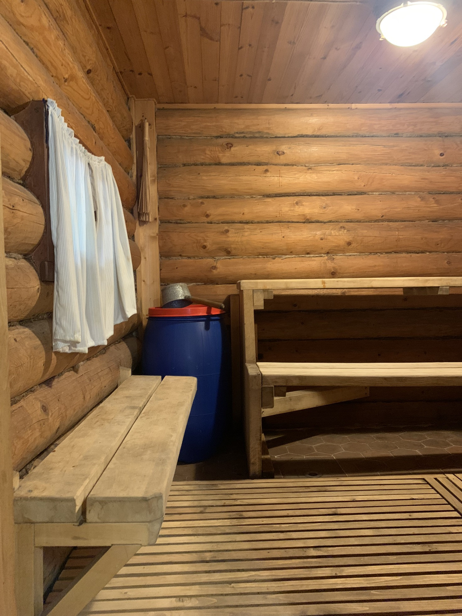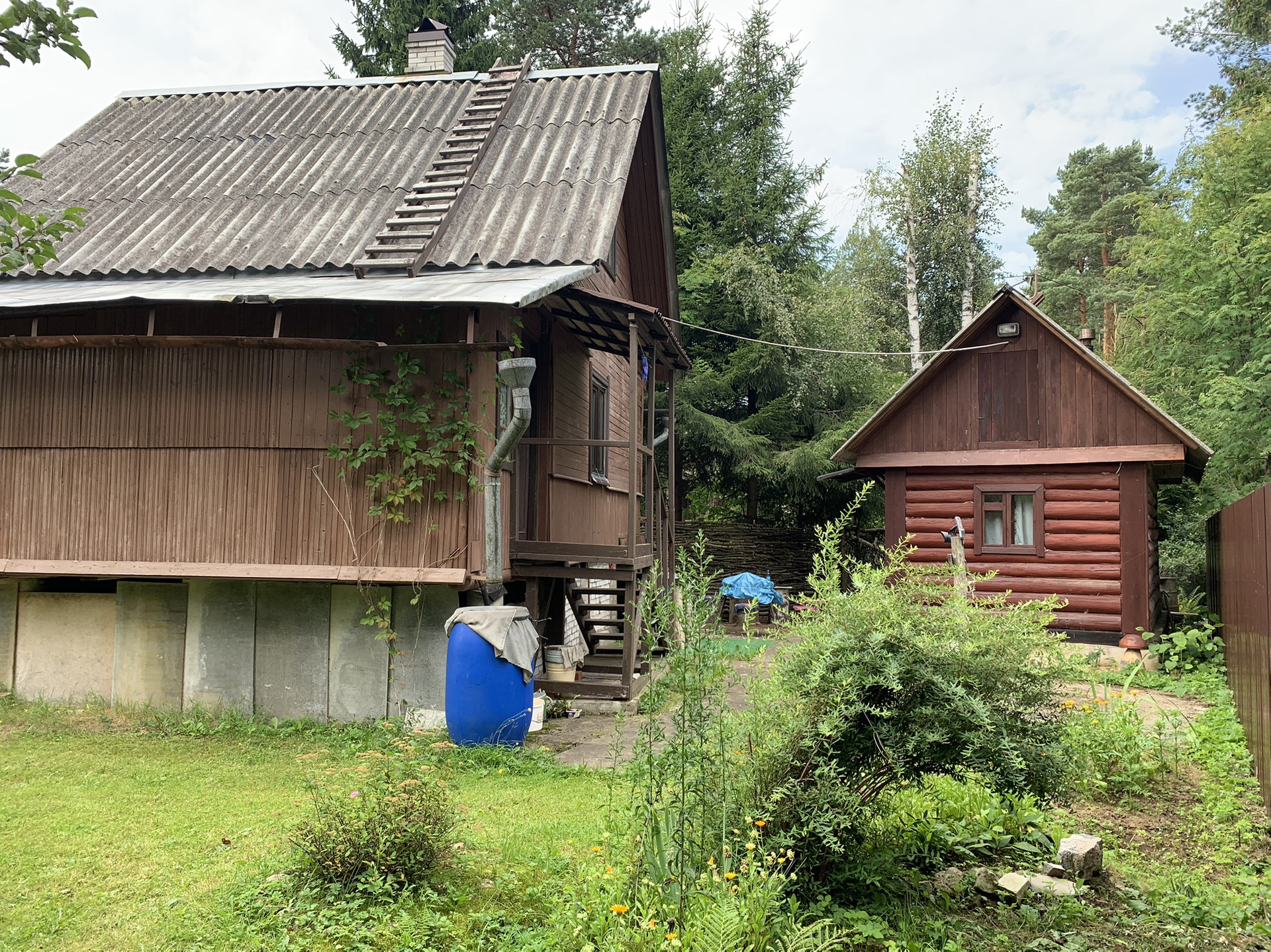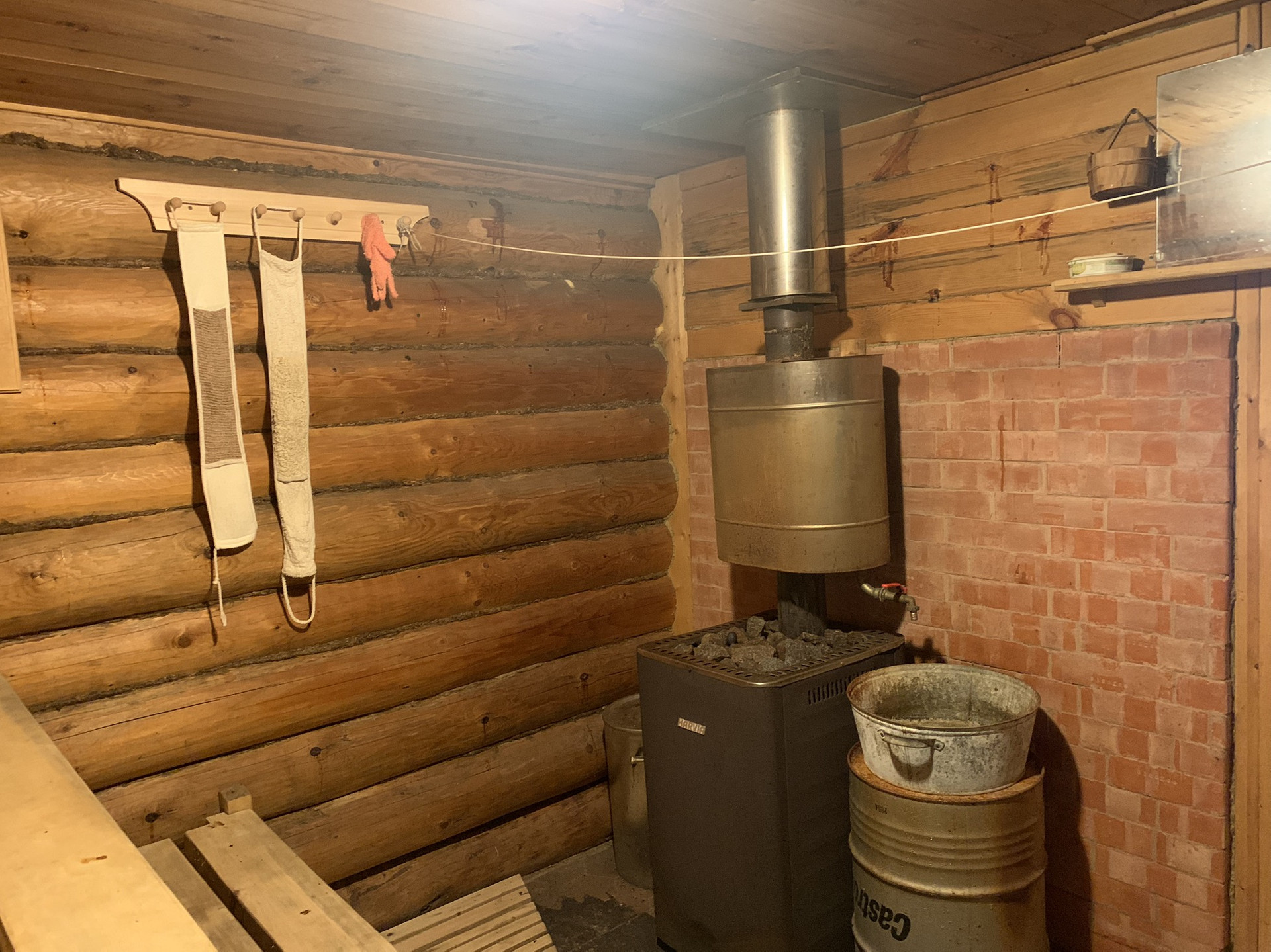 Баня:  русская деревянная(Бревно) на  фундаменте. Размер 6 х 3 м. Бак на 60 литров, комната отдыха, помывочная , парилка с каменной печью.