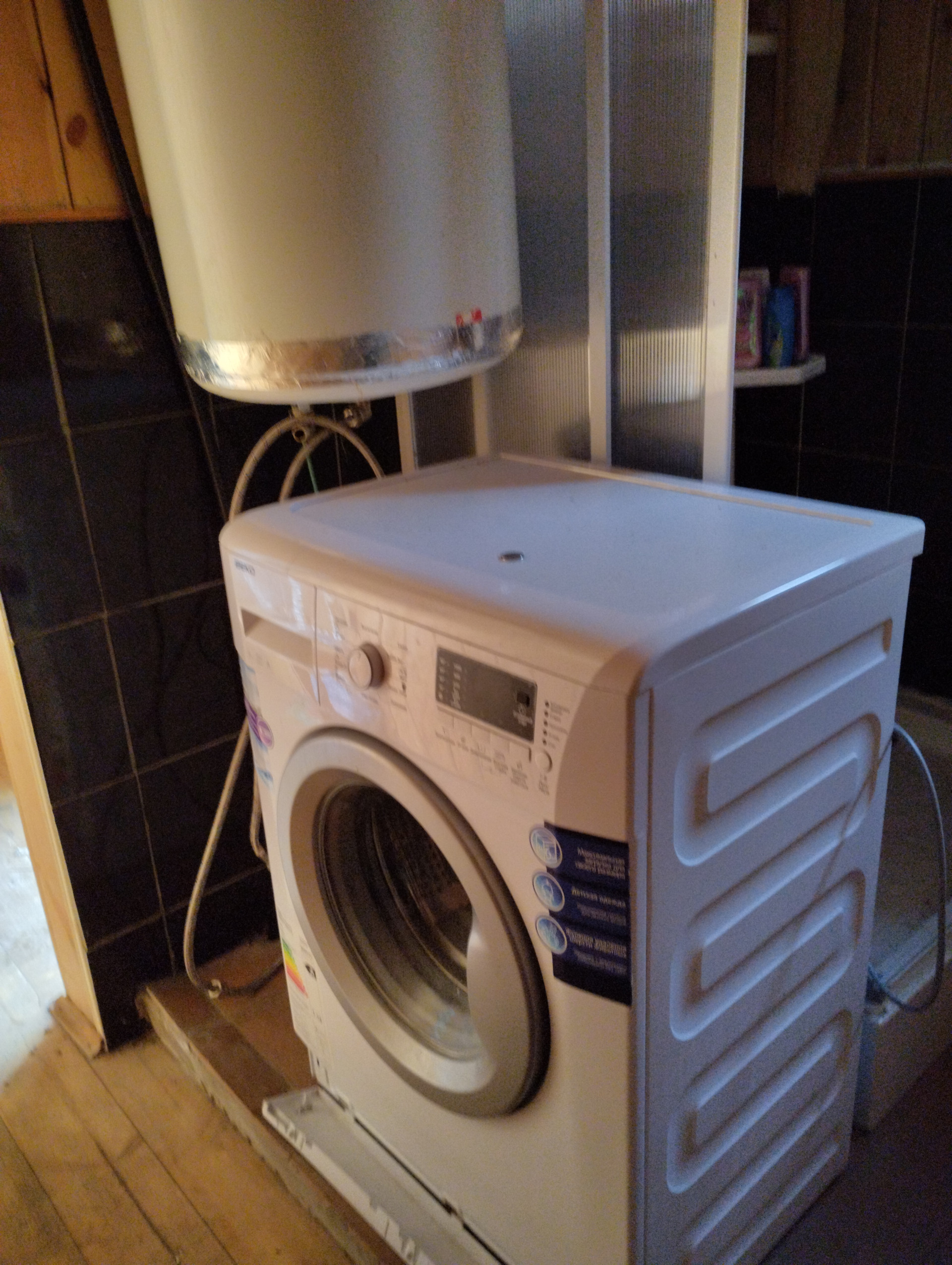 Дом из бруса, обшитый сайдингом. Колодец на участке, есть своя скважена, канализация т. к. сан/ узел в доме. Электричество, газ привозной.На первом этаже три комнаты, на втором одна большая. Посудомоечная машина, стиральная машинка, душевая кабина. Баня, беседка, электрические ворота для въезда машины. Три озера в пешей доступности.