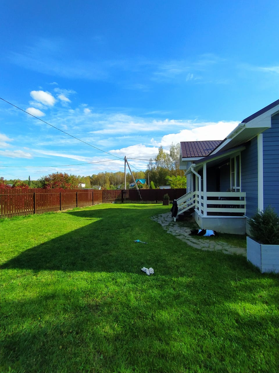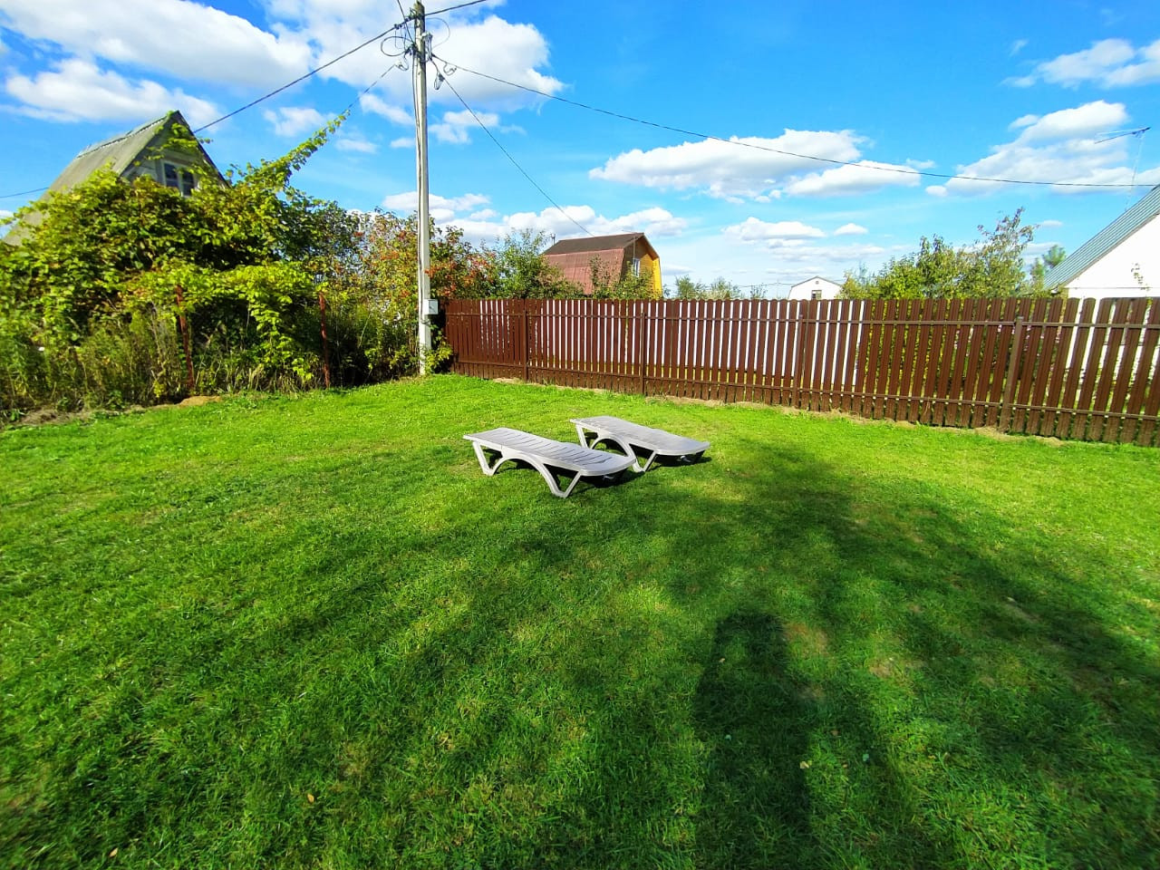 Участок геометрически правильной формы, ровный, угловой, полностью спланирован, выровнен, засеян газонной травой.