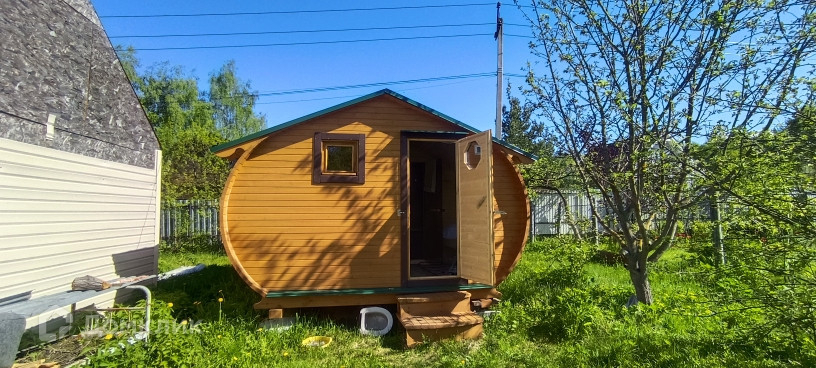 Установлена новая баня-бочка с дровяной печью, новая теплица.