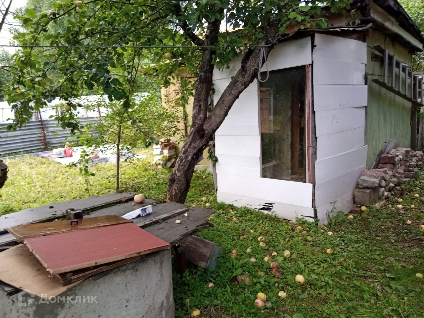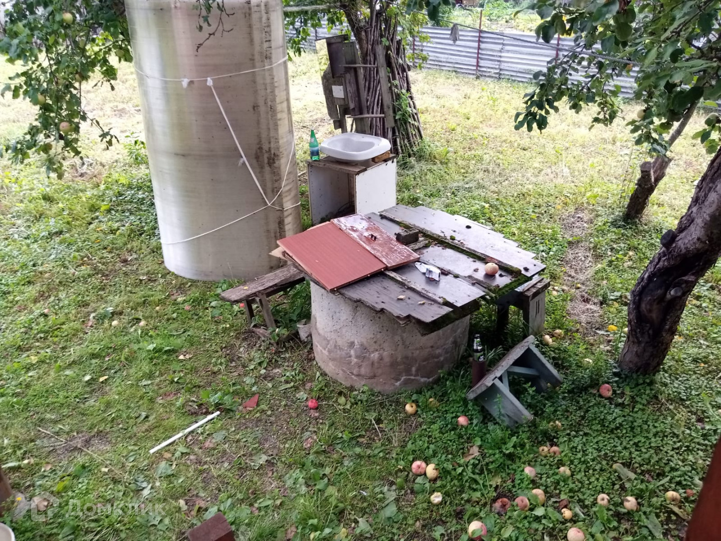 * Ухоженный участок: растут яблони.