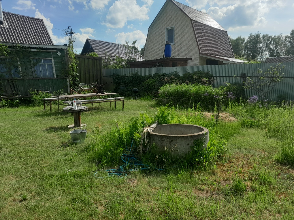 Участок ровный, правильной формы, сухой, не заросший. Огорожен, есть железный вагончик, свет подключён, туалет, колодец. Рядом озеро, лес. До ж/д станция Белоозерская 10 минут пешком. В СНТ есть детская площадка и магазин