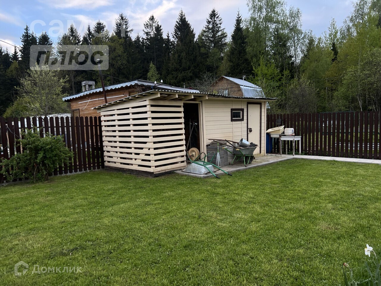 Участок ровный, ухоженный. Обустроен огород и сад, высажены яблони, черная смородина.