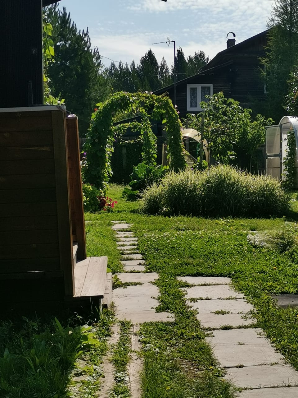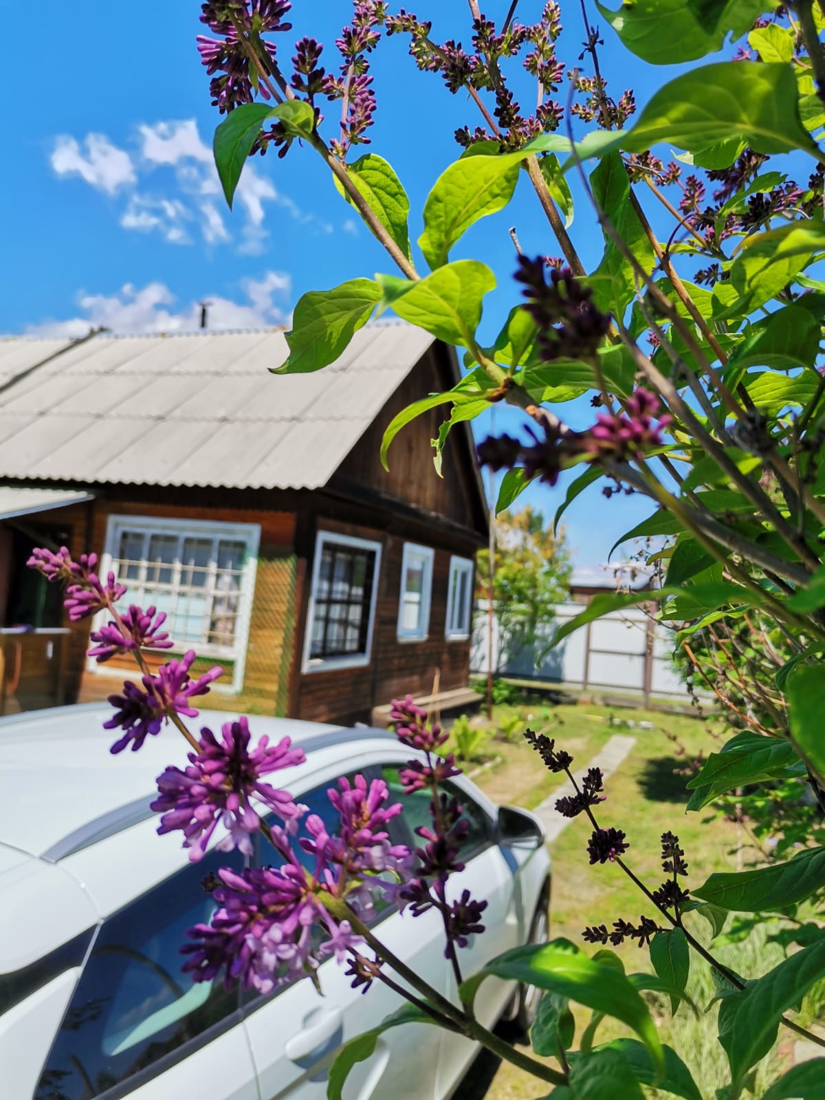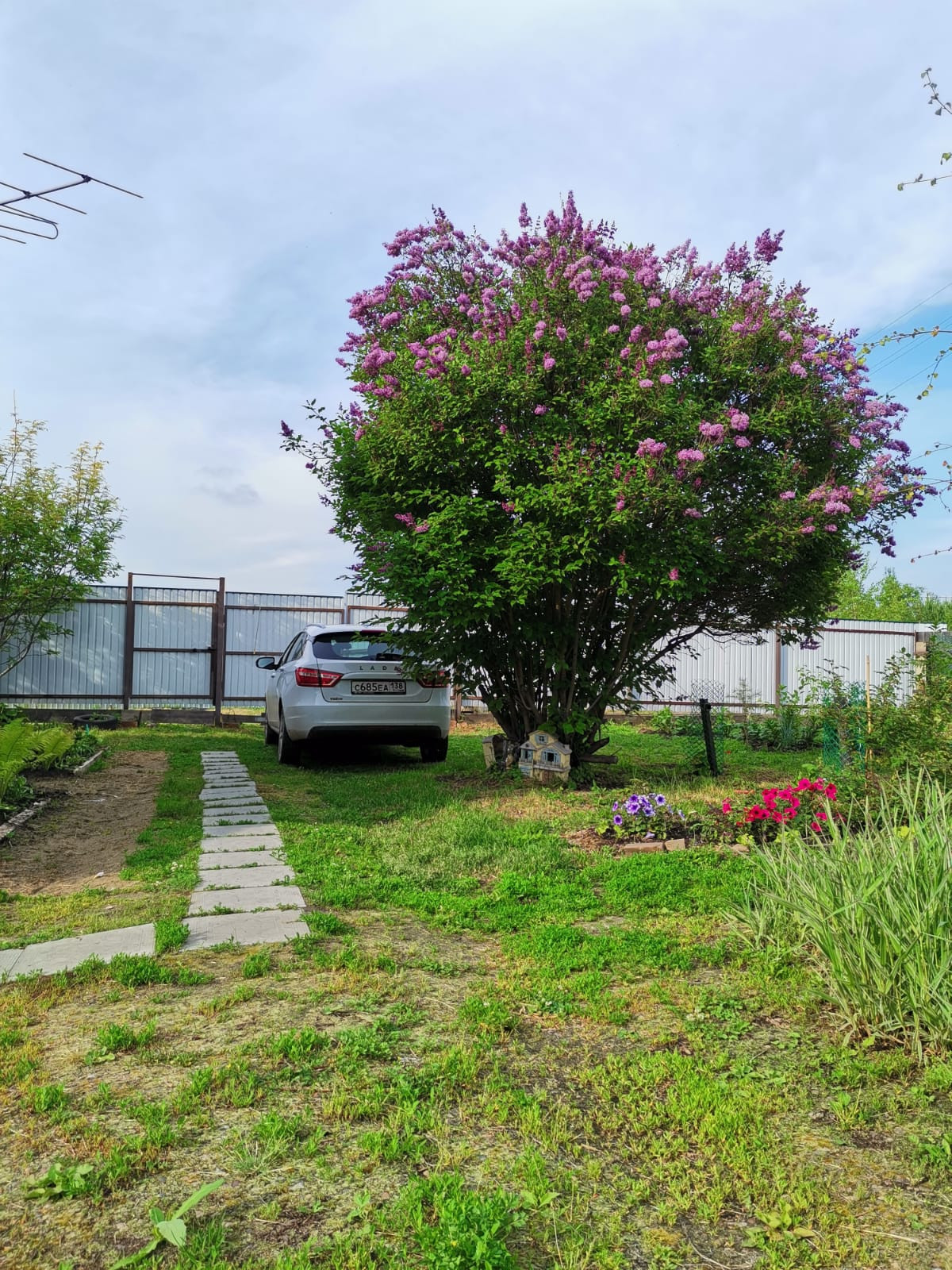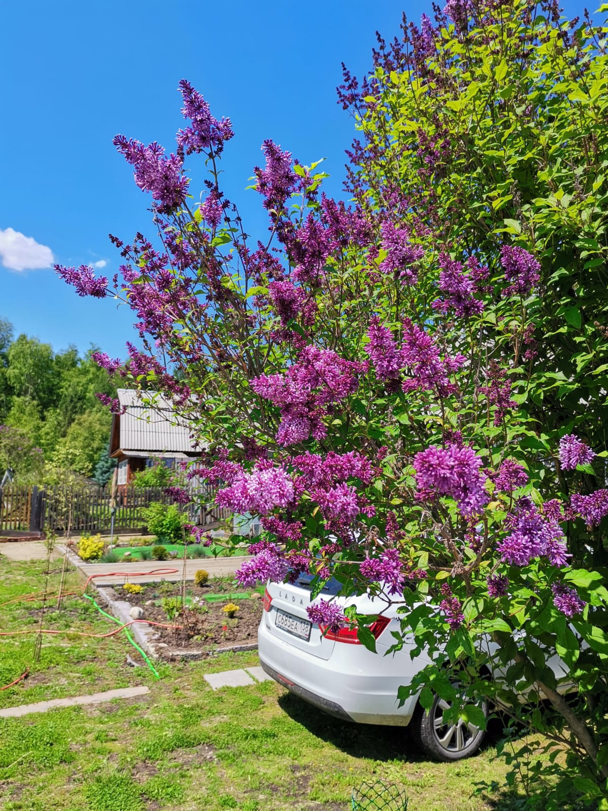 На участке - плодово-ягодные многолетние растения (малина, смородина черная и красная, слива, жимолость, ирга), удивительная по красоте цветения сирень!