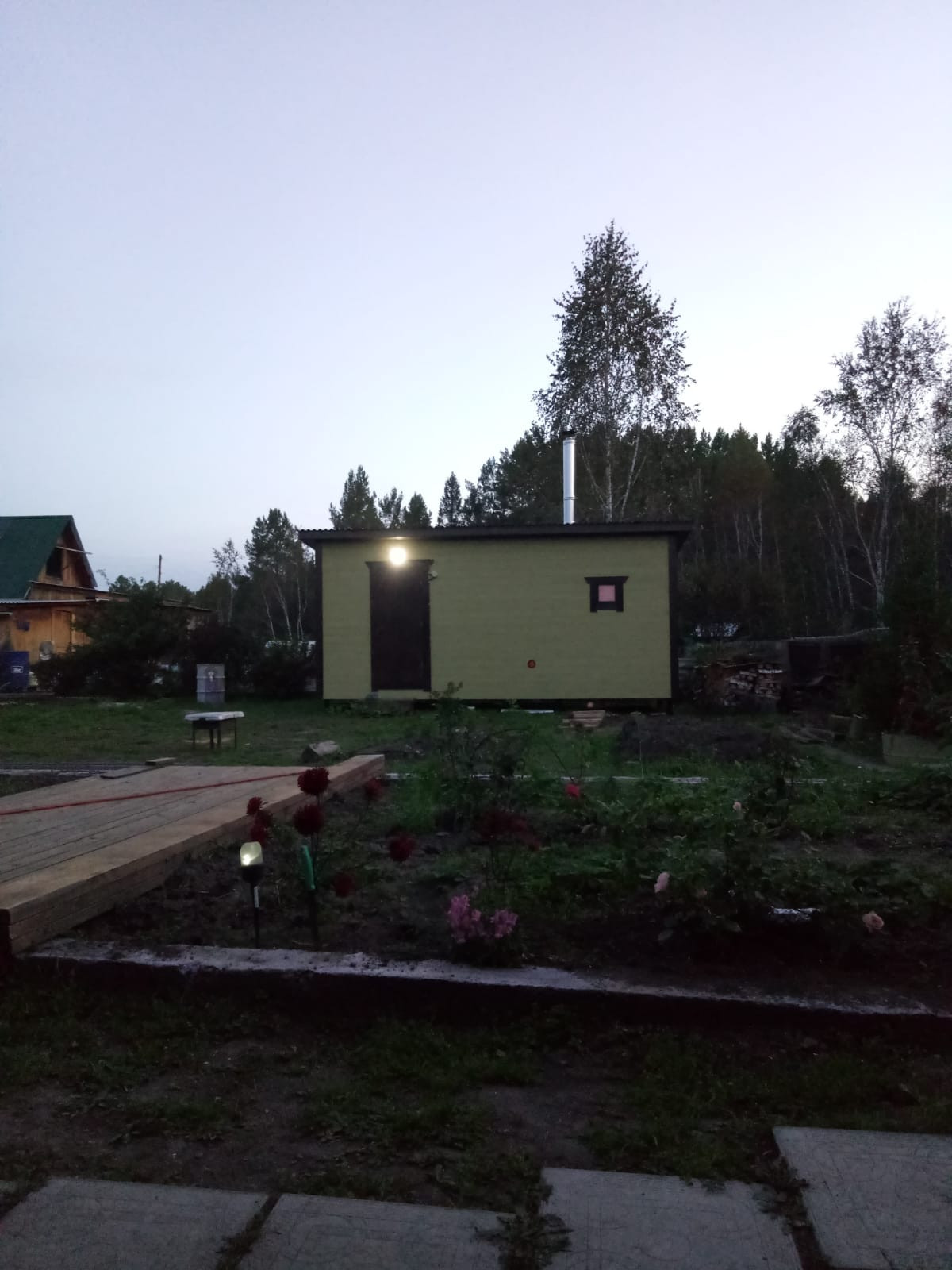 Деревянный садовый дом , с пристроенной остекленной верандой 45м