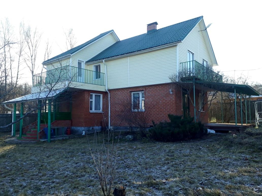 Продается 2-этажный жилой дом в д. Хлевино, СНТ "Лужники", г. Чехов. Общая площадь дома 174 кв.м, жилая 157 кв.м на участке 11 соток. Материал стен первого этажа брус + облицовка кирпичом, стены второго этажа каркасно-обшивные утепленные + сайдинг, материал кровли - металлочерепица. Окна первого этажа двойные деревянные, второго пластиковые стеклопакеты. Дом имеет особенную архитектуру: парадный вход и отдельный выход на открытую террасу в сад, два балкона. В доме кухню от гостиной комнаты, отделяет выложенный камин с функцией печи. Комнаты просторные с высокими потолками, деревянными полами покрытыми лаком, частично в комнатах постелен ковролин. В доме на первом этаже санузел, в нем установлены: душевая кабина, унитаз, раковина. При продаже в доме остается кухонный гарнитур, шкафы, люстры, стиральная машина. На территории участка имеется бревенчатая баня, с большой застекленной верандой. В бане есть душевая кабина, стиральная машина, подведена холодная и горячая вода. Вся система водоснабжения запитана от индивидуальной скважины глубиной 60 метров, для канализационных стоков оборудован трехступенчатый септик. Участок правильной формы, огорожен деревянным забором. Ухожен - фруктовые деревья и цветники. Есть вымощенная стоянка для 4-х автомашин, игровая площадка. Очень удобное расположение садового товарищества, рядом протекает река Лопасня, в соседней д. Хлевино в 10 минутах пешком, остановка общественного транспорта, на котором за 25 минут можно добраться до ж/д вокзала г. Чехов. Подьезд к дому круглогодичный, дороги зимой чистят, в СНТ многие проживают круглугодично.