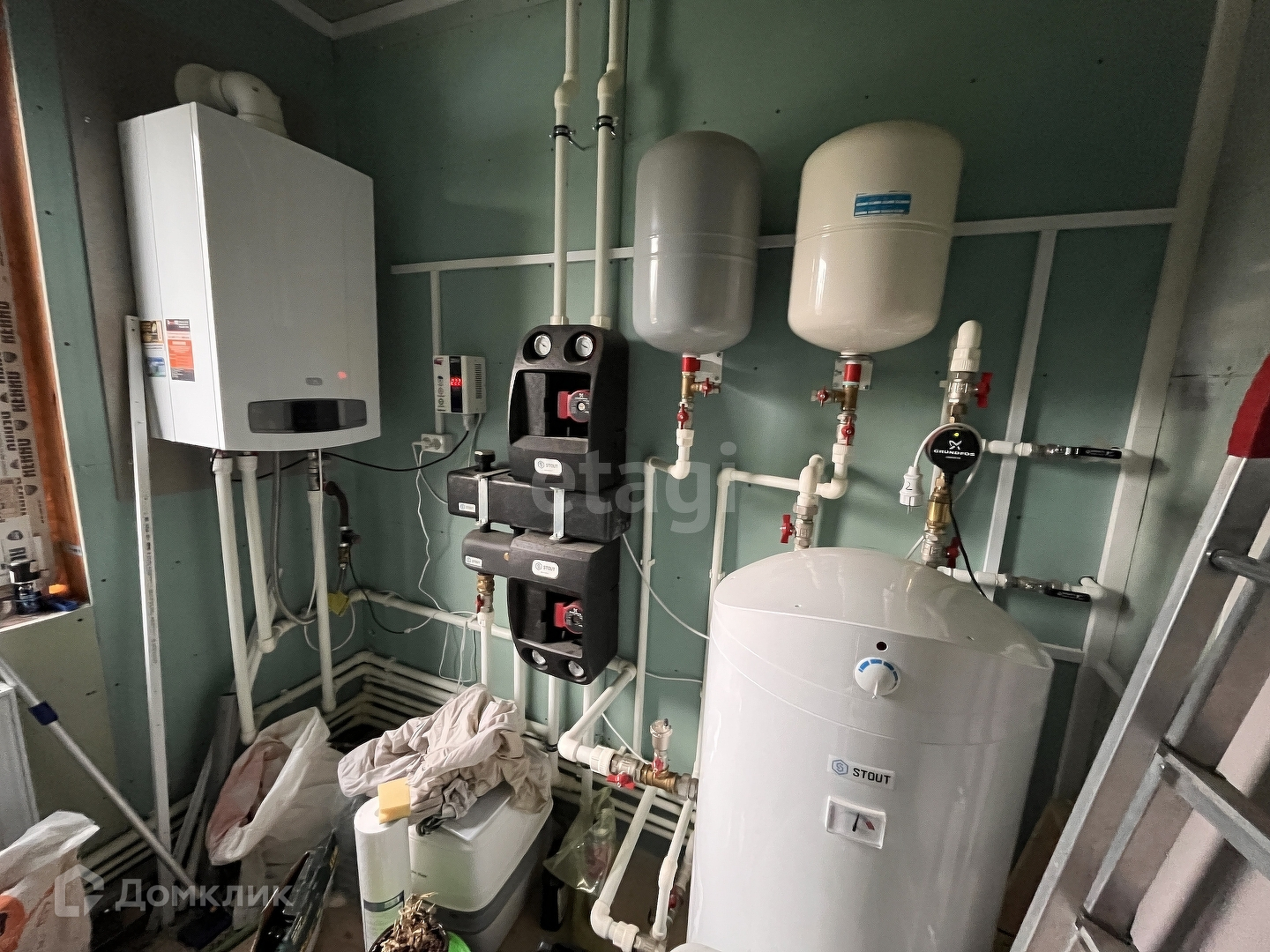 Обогрев воды и батарей осуществляется через двуконтурный газовый котёл с накопителем.