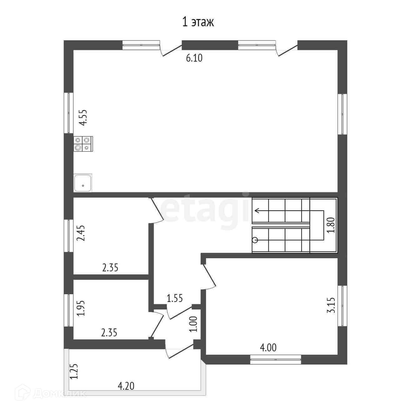 1 этаж: Санузел (туалет, душ, бойлер для горячей воды), просторная кухня, спальня, большая гостиная, небольшое помещение (под гардеробную или летняя кухня) 2 этаж: 3 большие спальни и санузел.