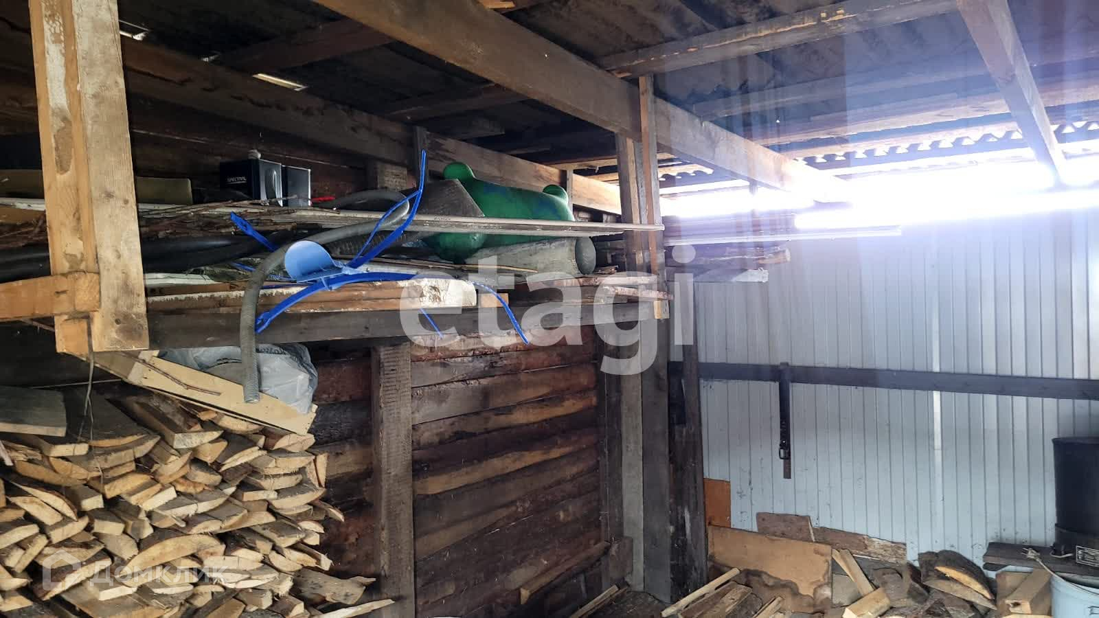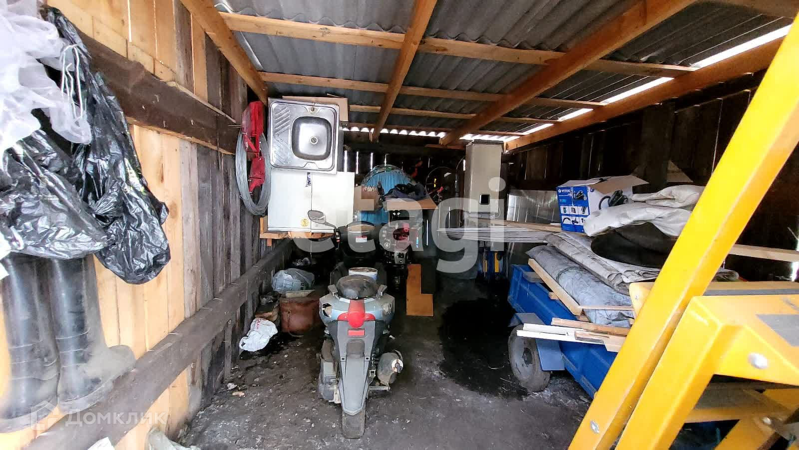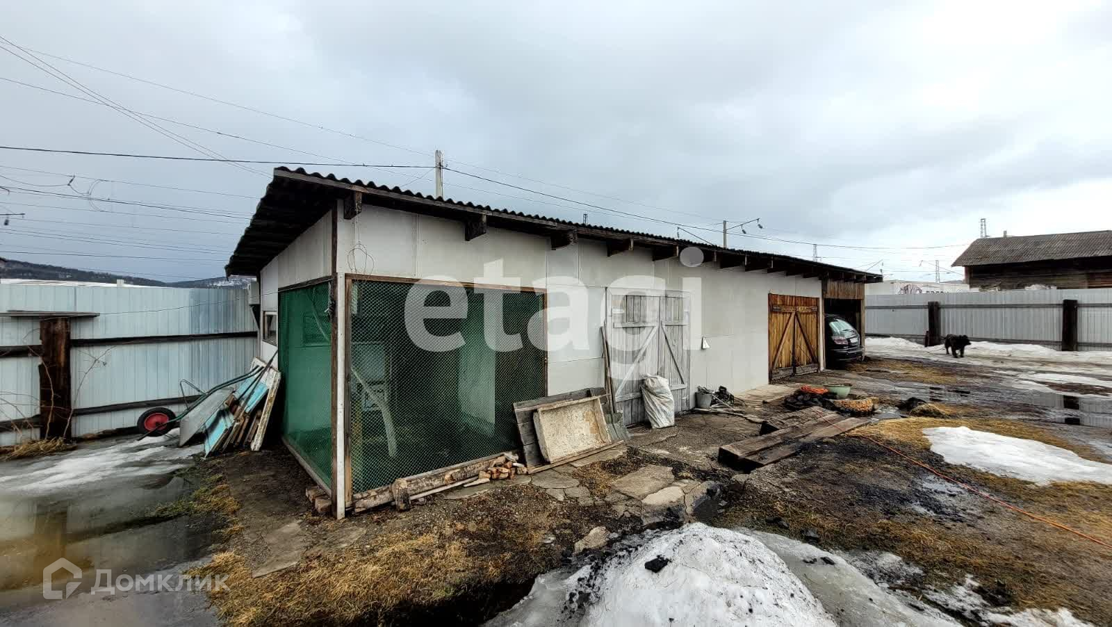 На территории участка расположены многочисленные хозяйственные постройки, включая баню, сарай, гараж на две машины, курятник и складское помещение. Для хранения продуктов и напитков предусмотрен подземный погреб.