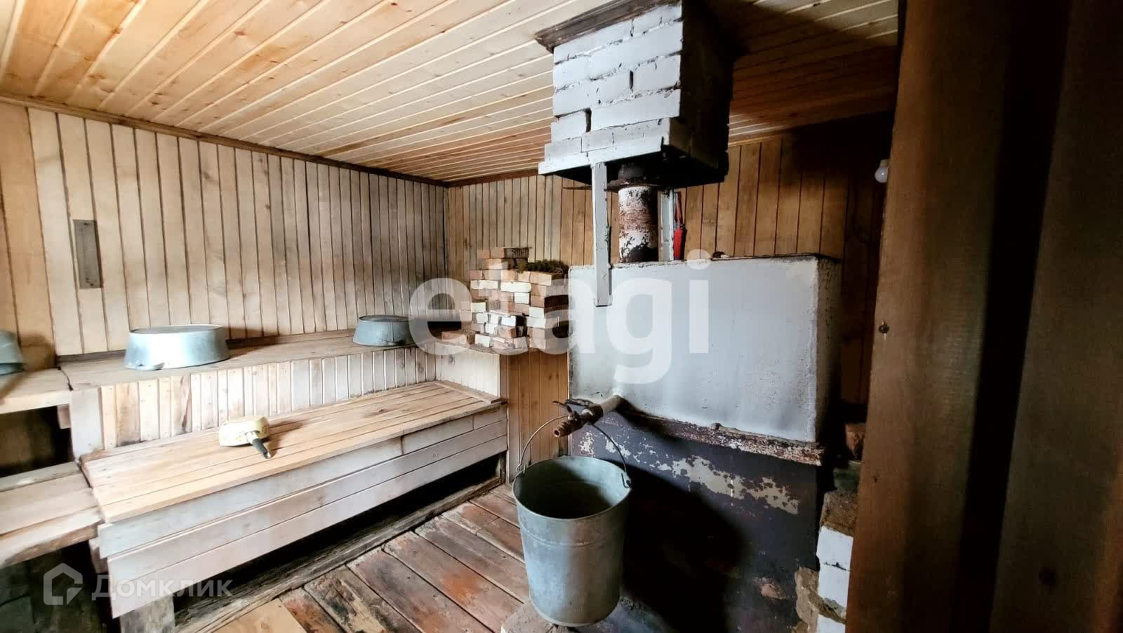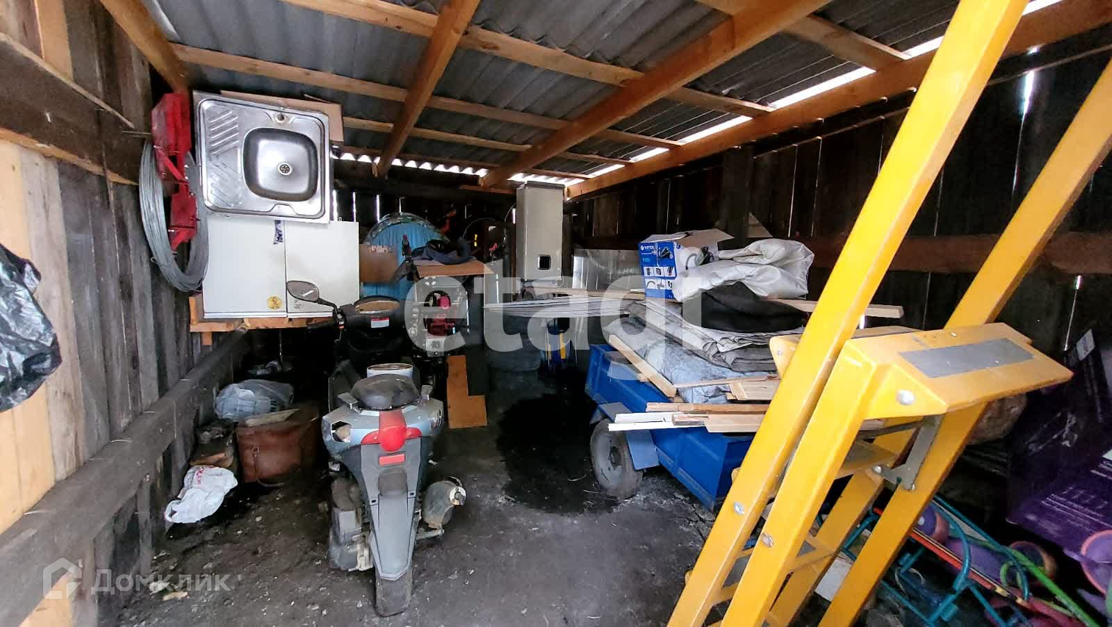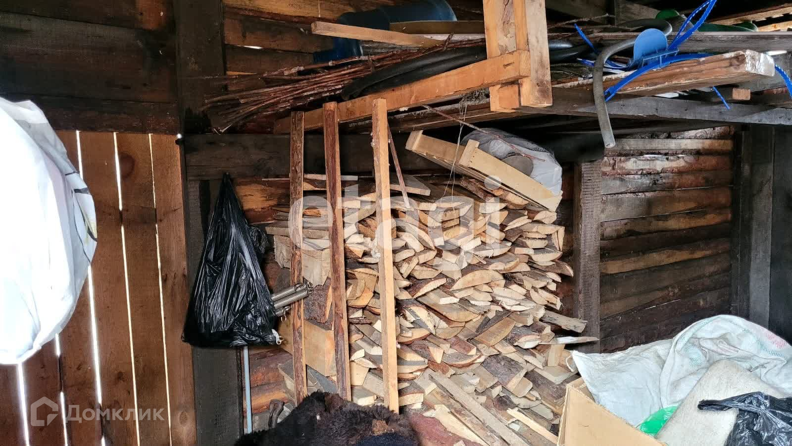 На территории участка расположены многочисленные хозяйственные постройки, включая баню, сарай, гараж на две машины, курятник и складское помещение. Для хранения продуктов и напитков предусмотрен подземный погреб.