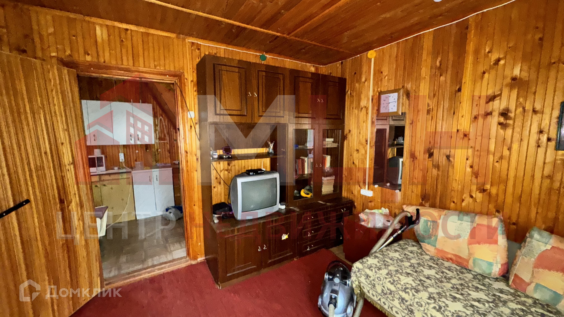 Снаружи обшит сайдингом, внутри вагонка