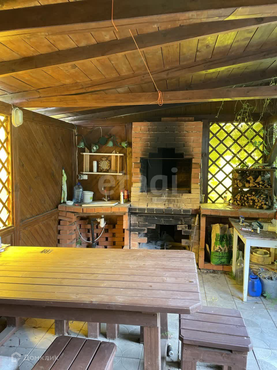 Основной дом каркасный 40м2 c печным отоплeниeм и пристрой к нему 24м2, c банeй и санузлом, беседка с печью-барбекю. Гараж и гостевой дом 20м2 из кирпича. Хоз постройка разделена на две секции(кладовка и летний санузел)