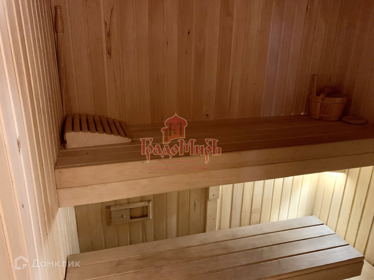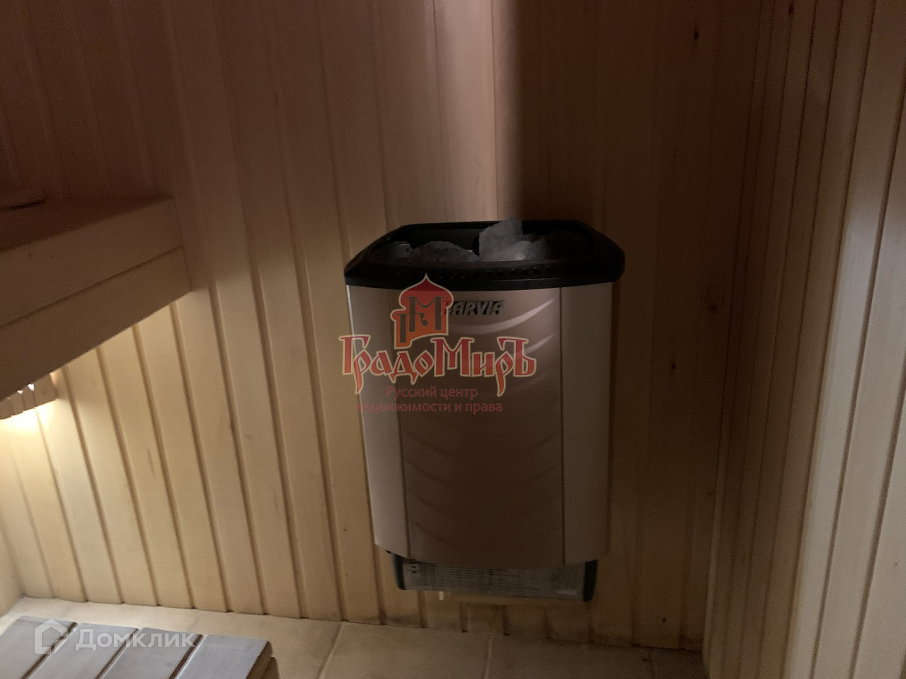 оборудованной котлом Harvia. Есть просторная комната отдыха и