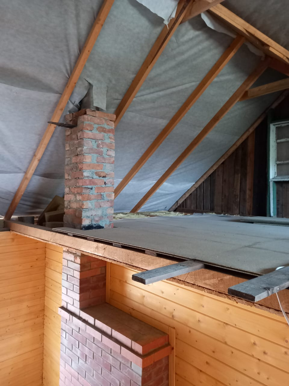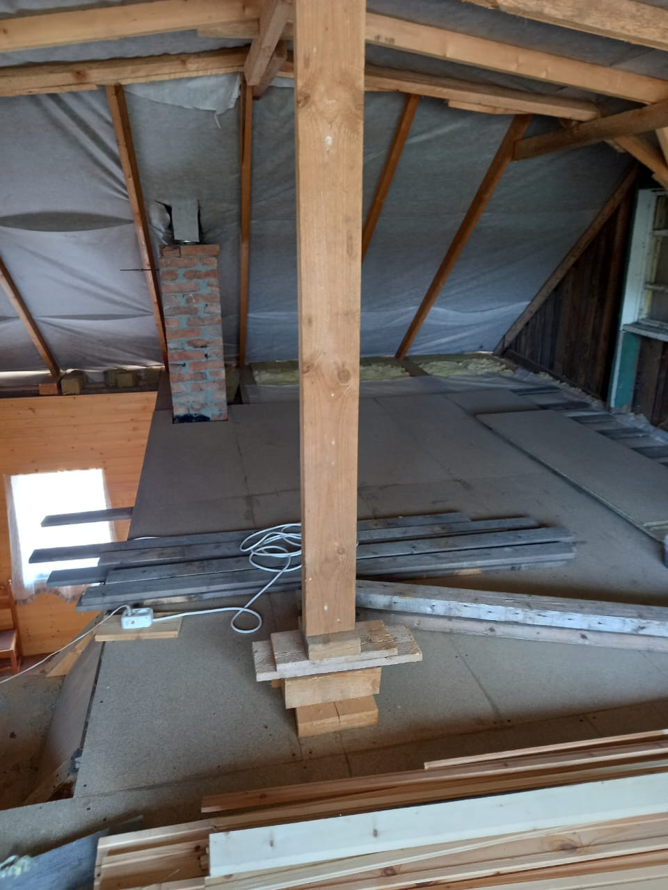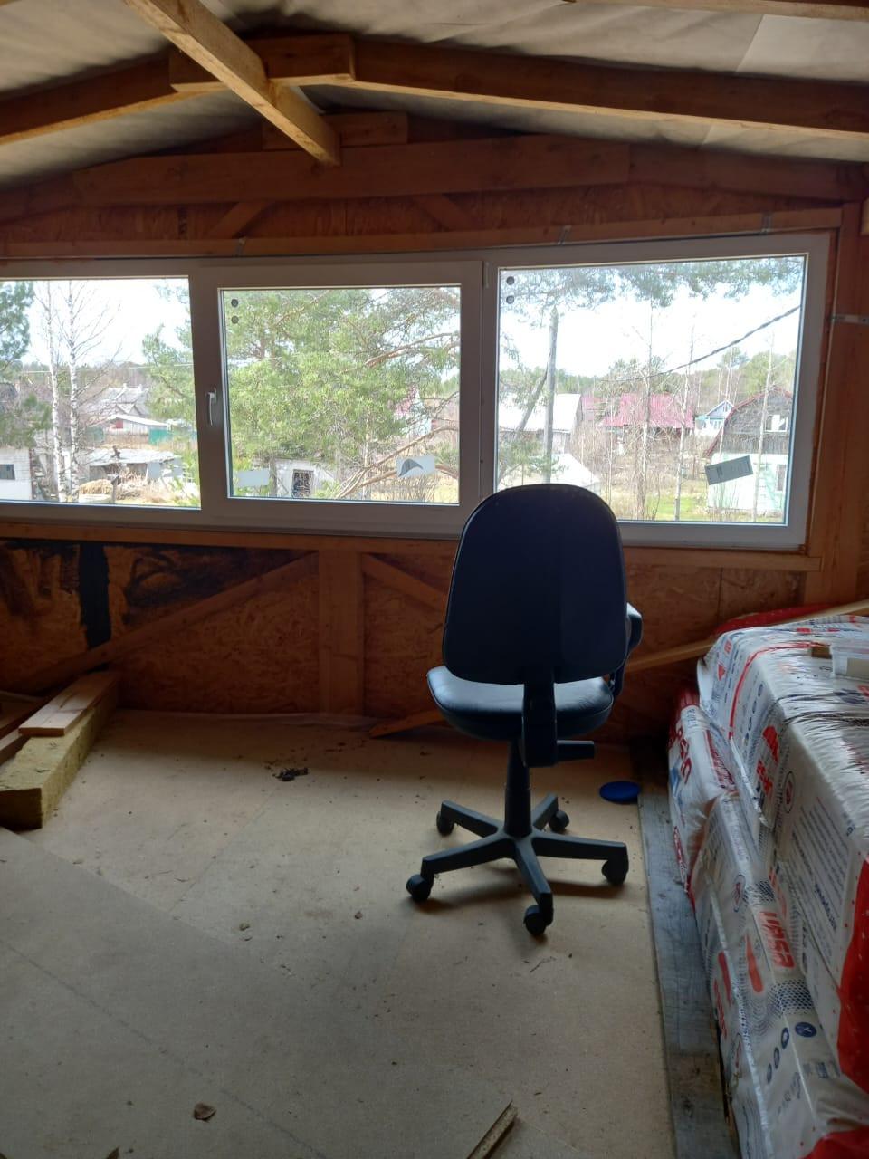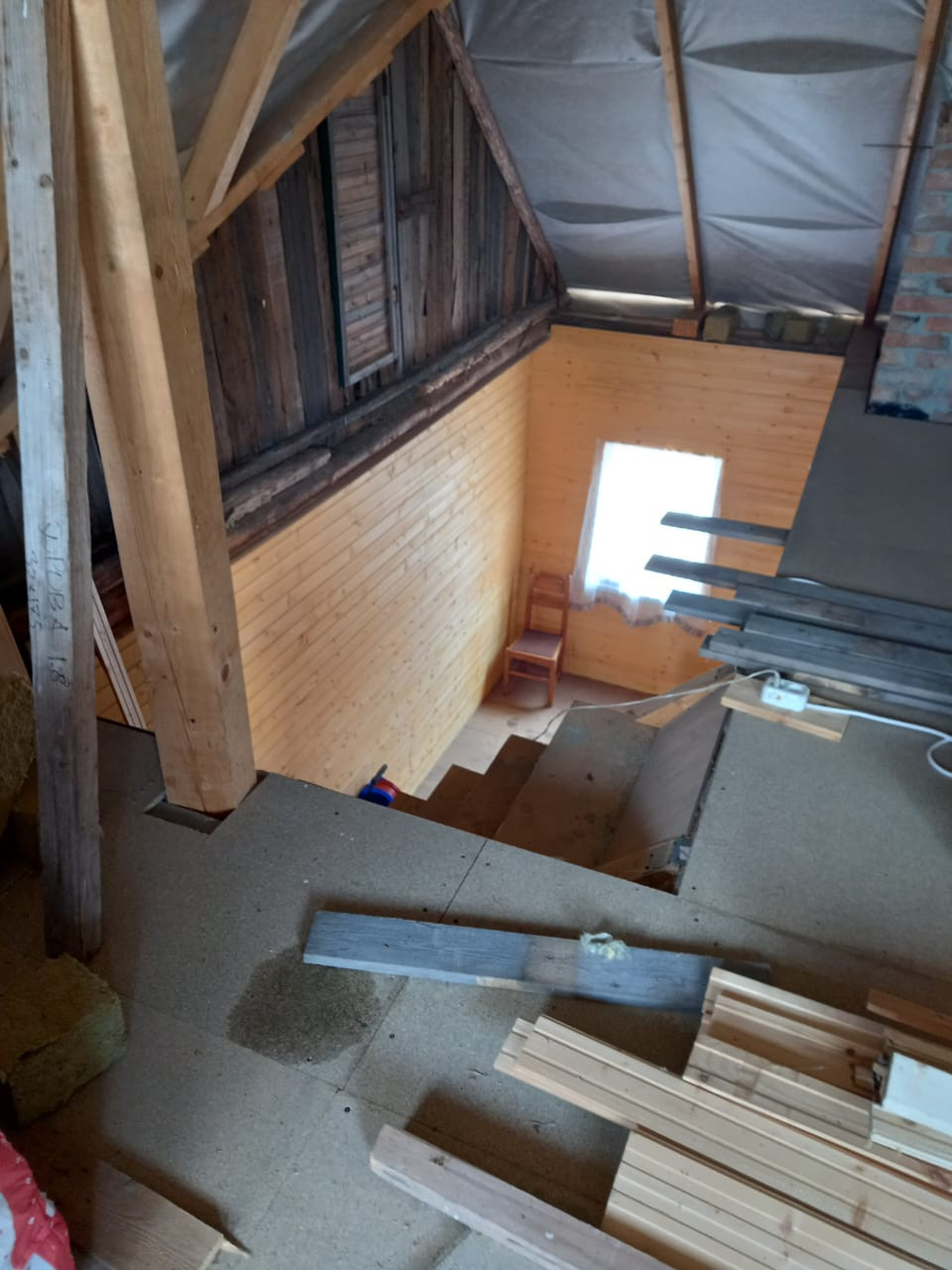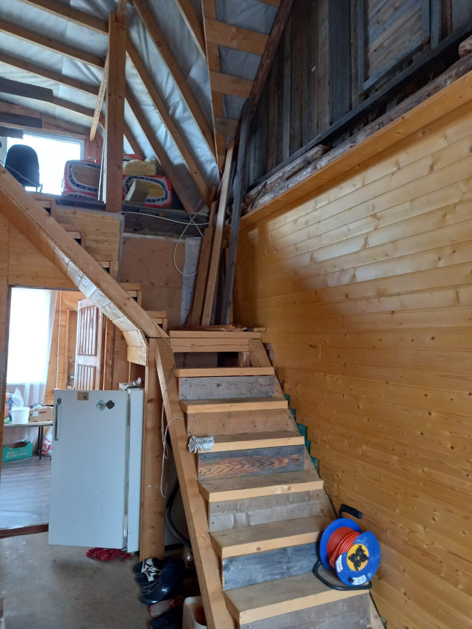 Второй этаж требует достройки (имеются материалы: мин.вата, доски и т.п.)