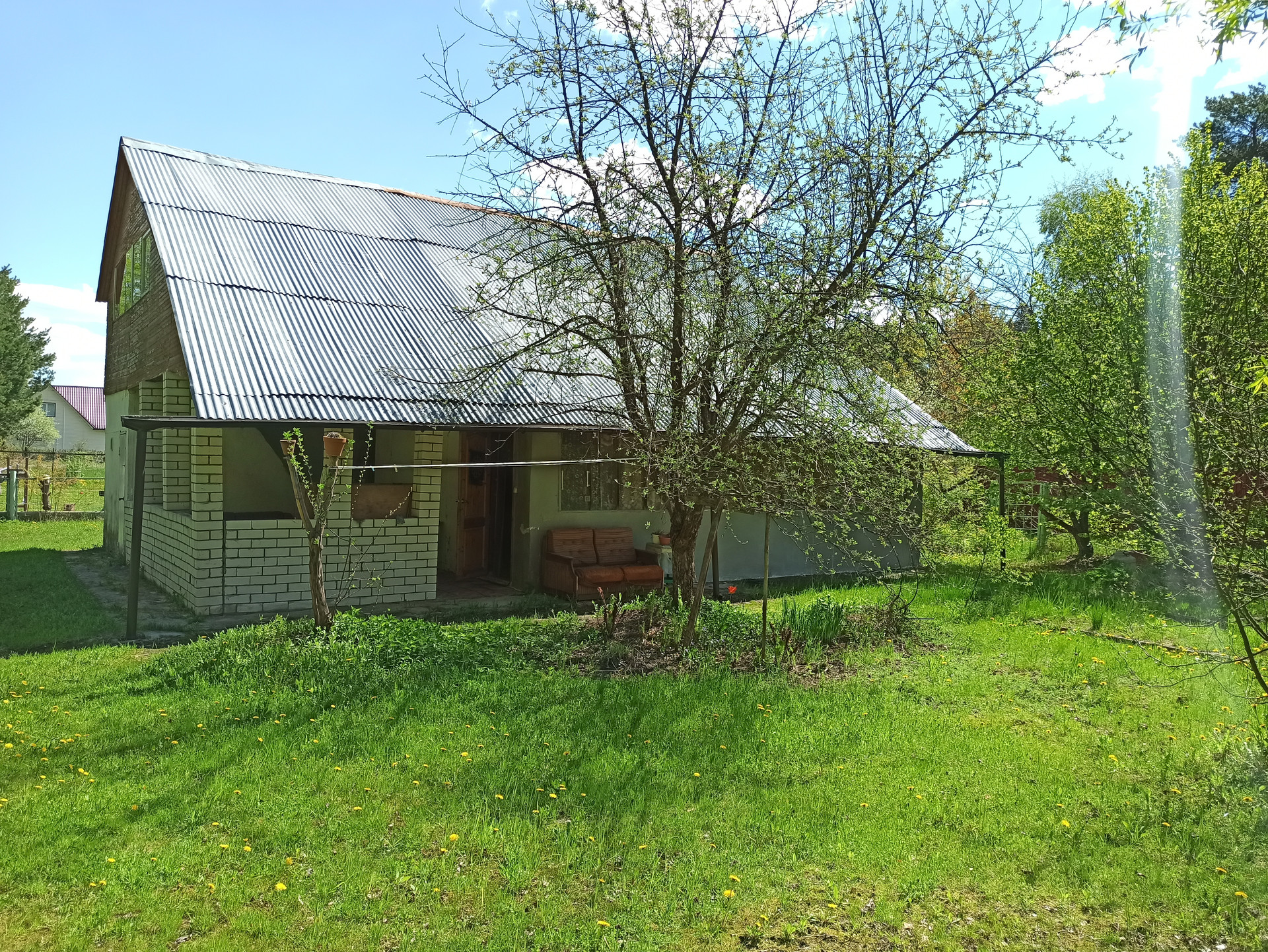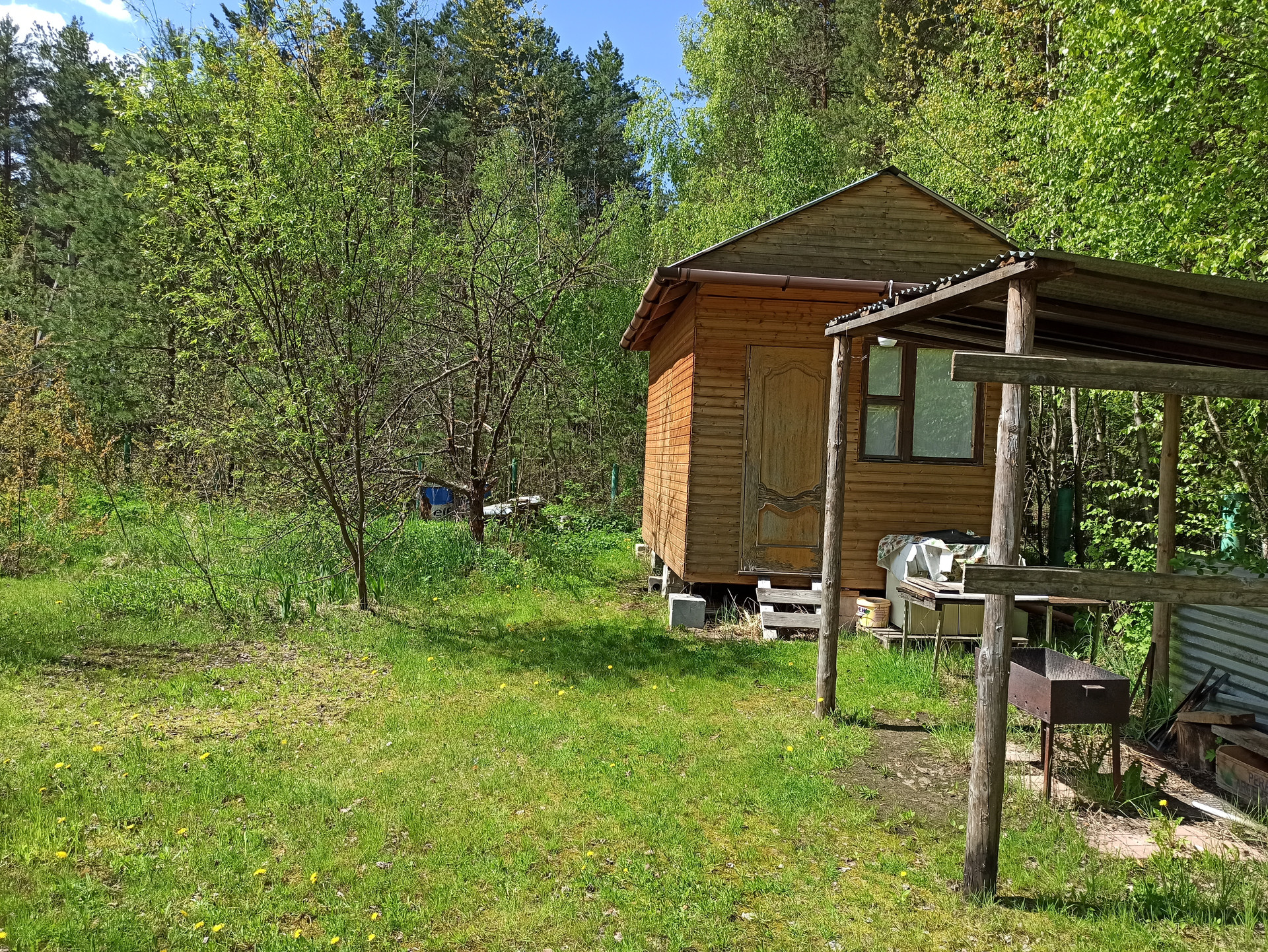 В доме две комнаты, просторная кухня, душевая. На участке новый хозблок, навес для барбекю. Участок огорожен забором. Рядом с участком сосновый лес с ягодами и грибами.