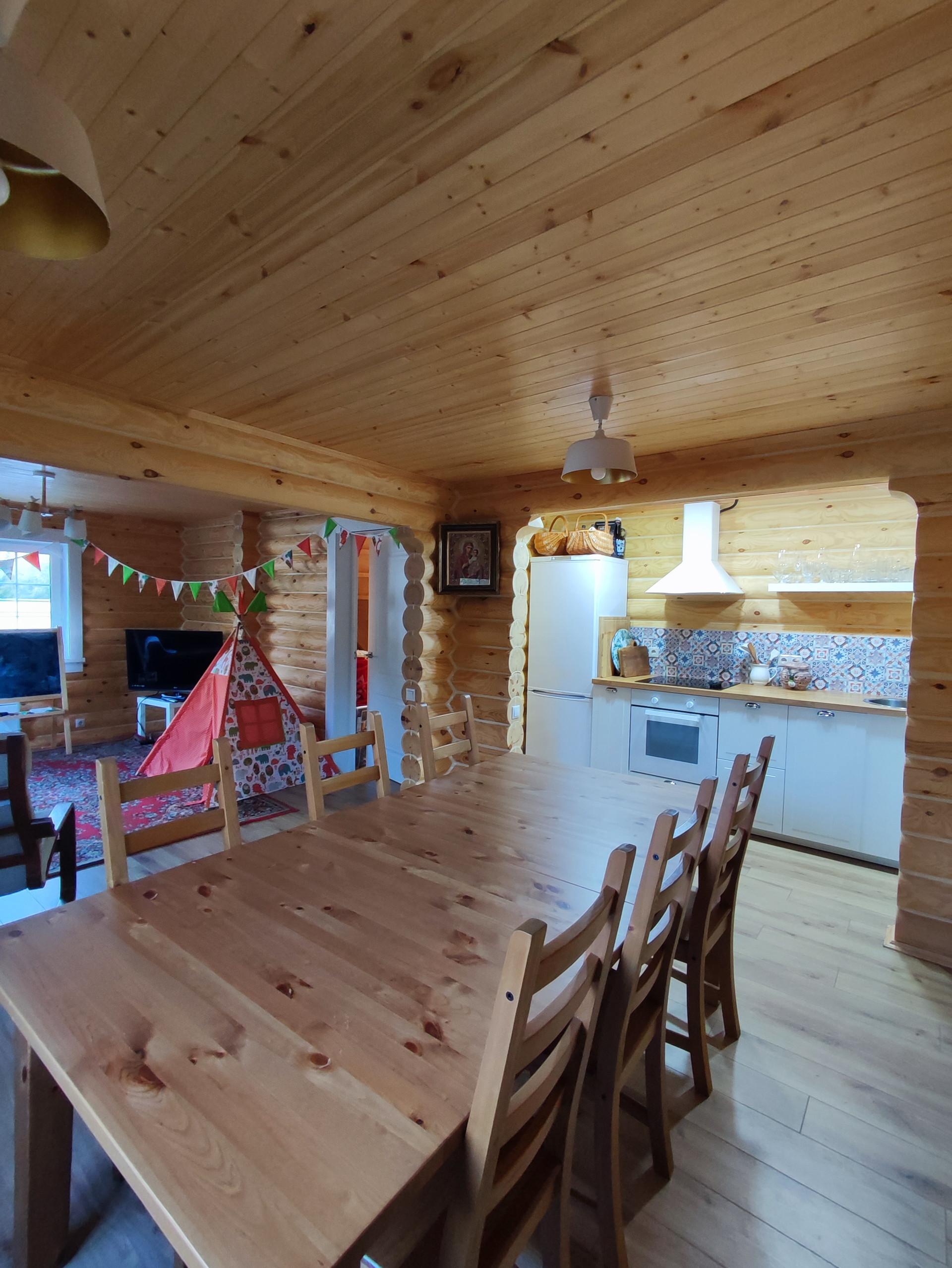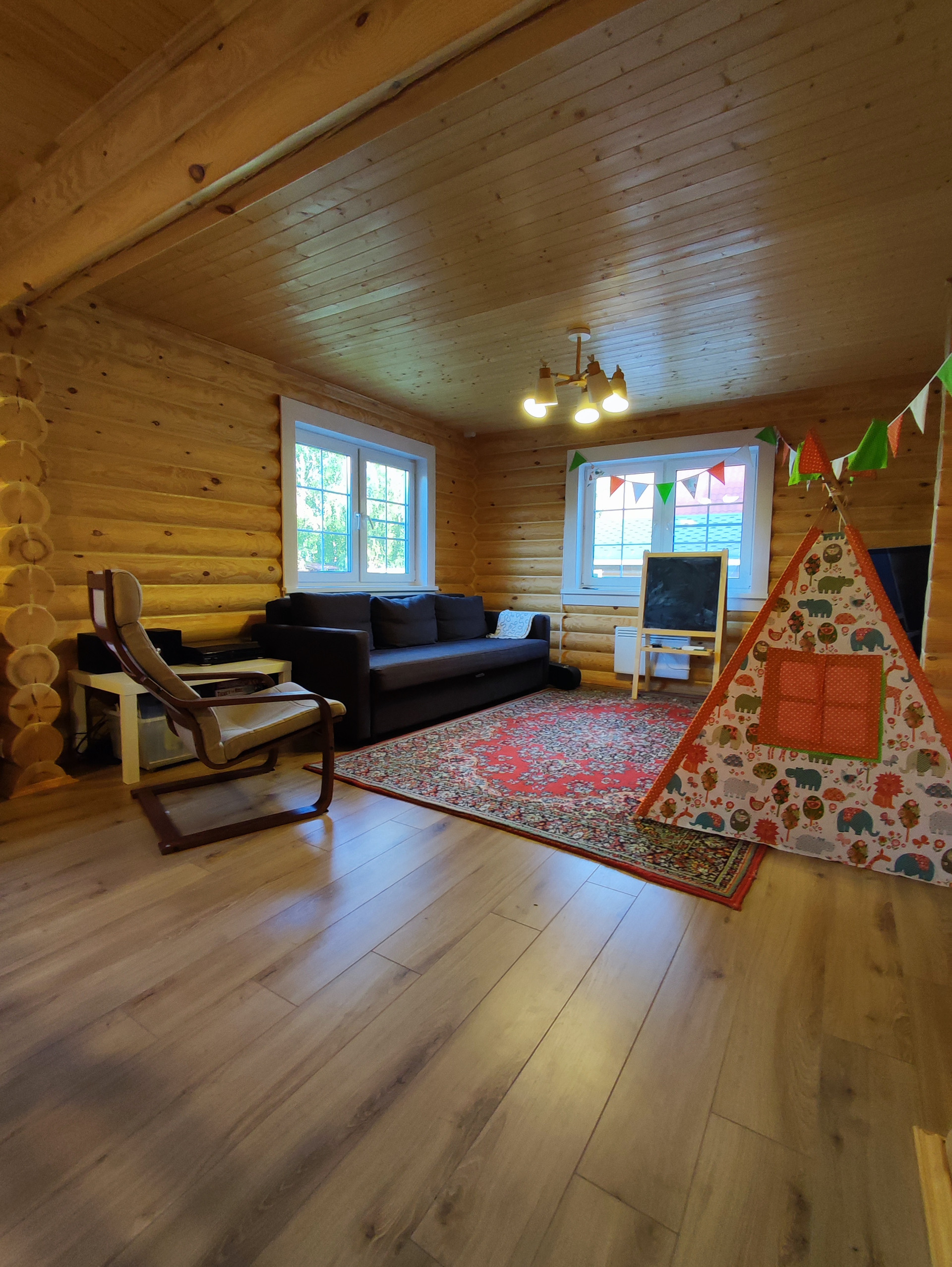 - 1 этаже кухня - гостиная, сан.узел;