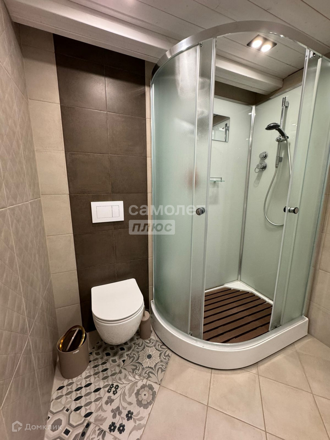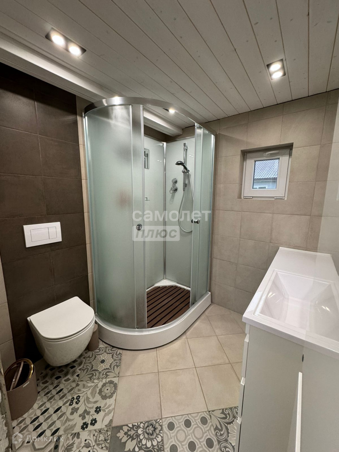 · Светлый совмещенный санузел с душевой кабиной и точечным освещением по периметру (4,8 кв.м.),