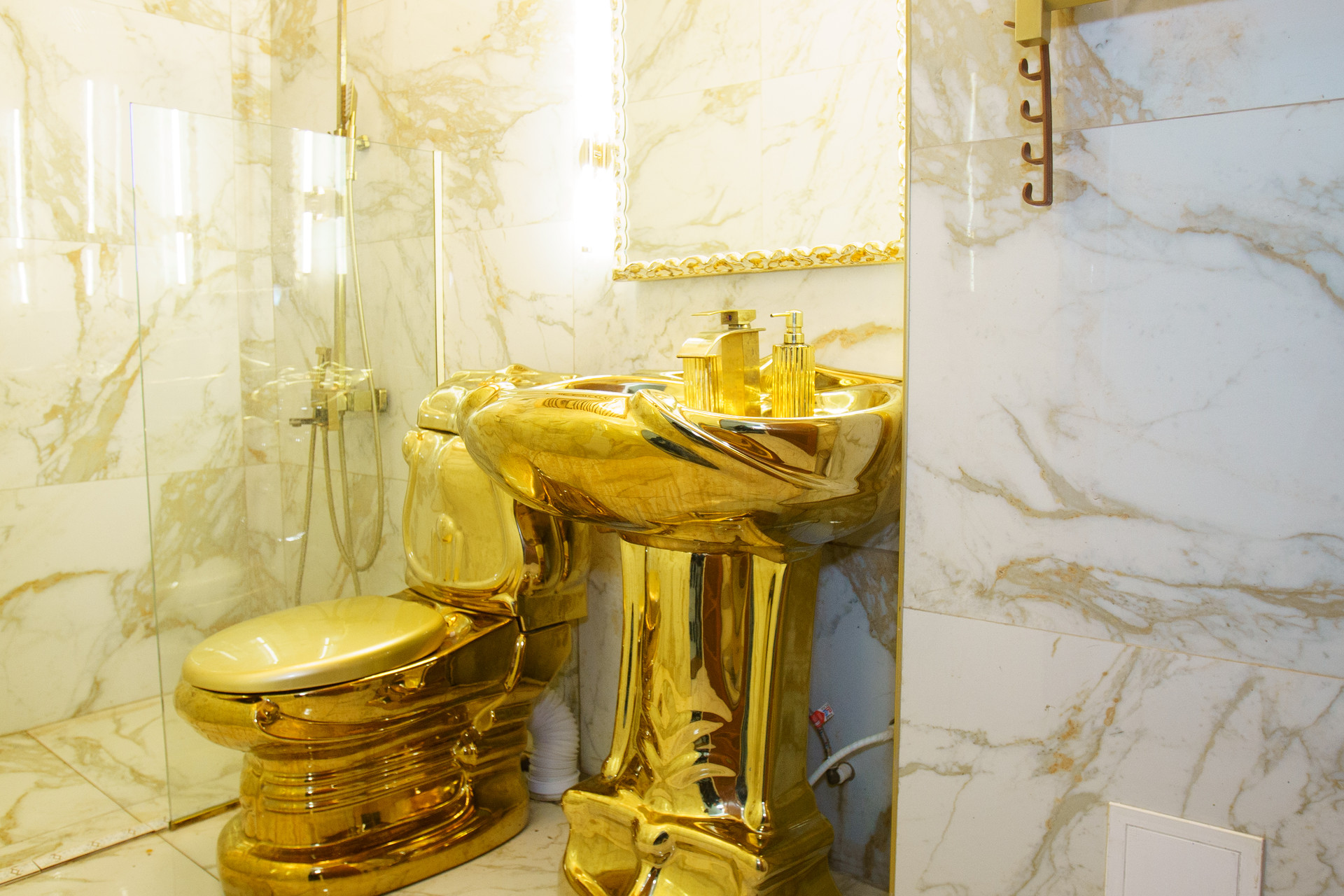 На полу первого этажа мраморная плитка 60/120м.