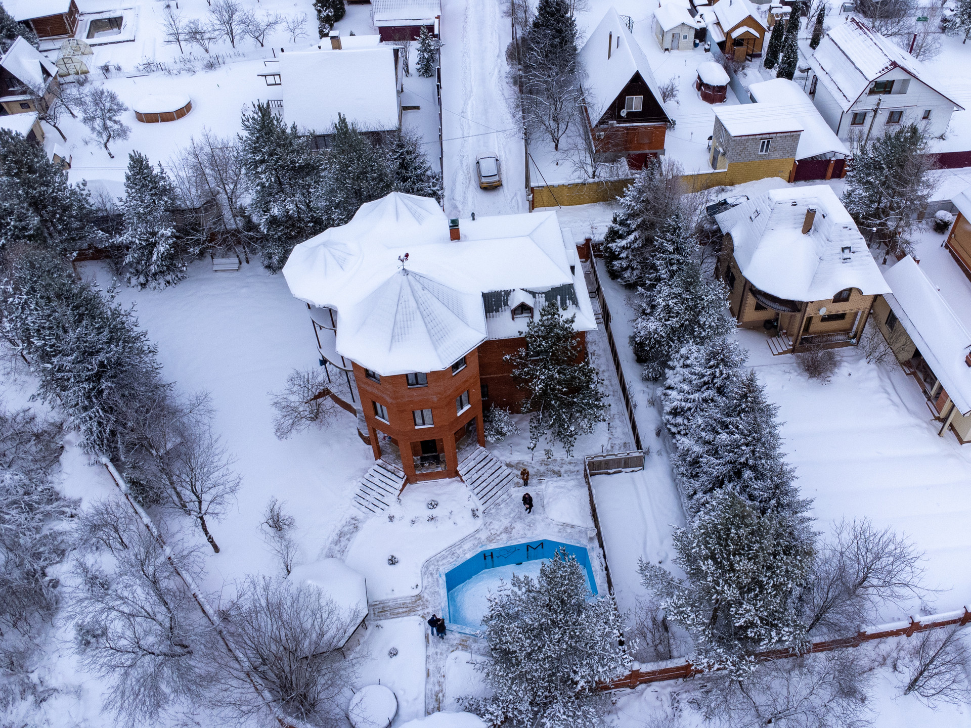 На терретории участка расположен бассеин глубиной 2.38 м., толщина стен 45 см., залит бетоном.