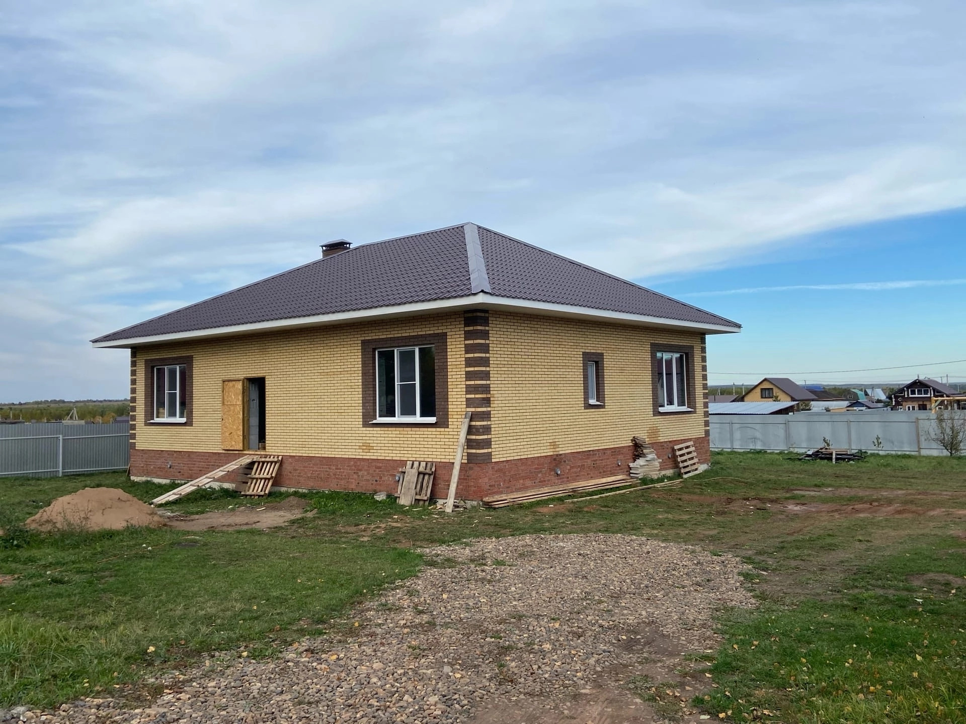 Продам дом в прекрасном и спокойном месте, природа и чистый воздух. дом построен на монолитной подушке из пеноблока обложенный кирпичном, кровля черепица. в доме заведён газ, вода и электричество, отделка предчистовая.  Дом строили из качественных материалов. подробное описание и дополнительные фото пришлю в личку.