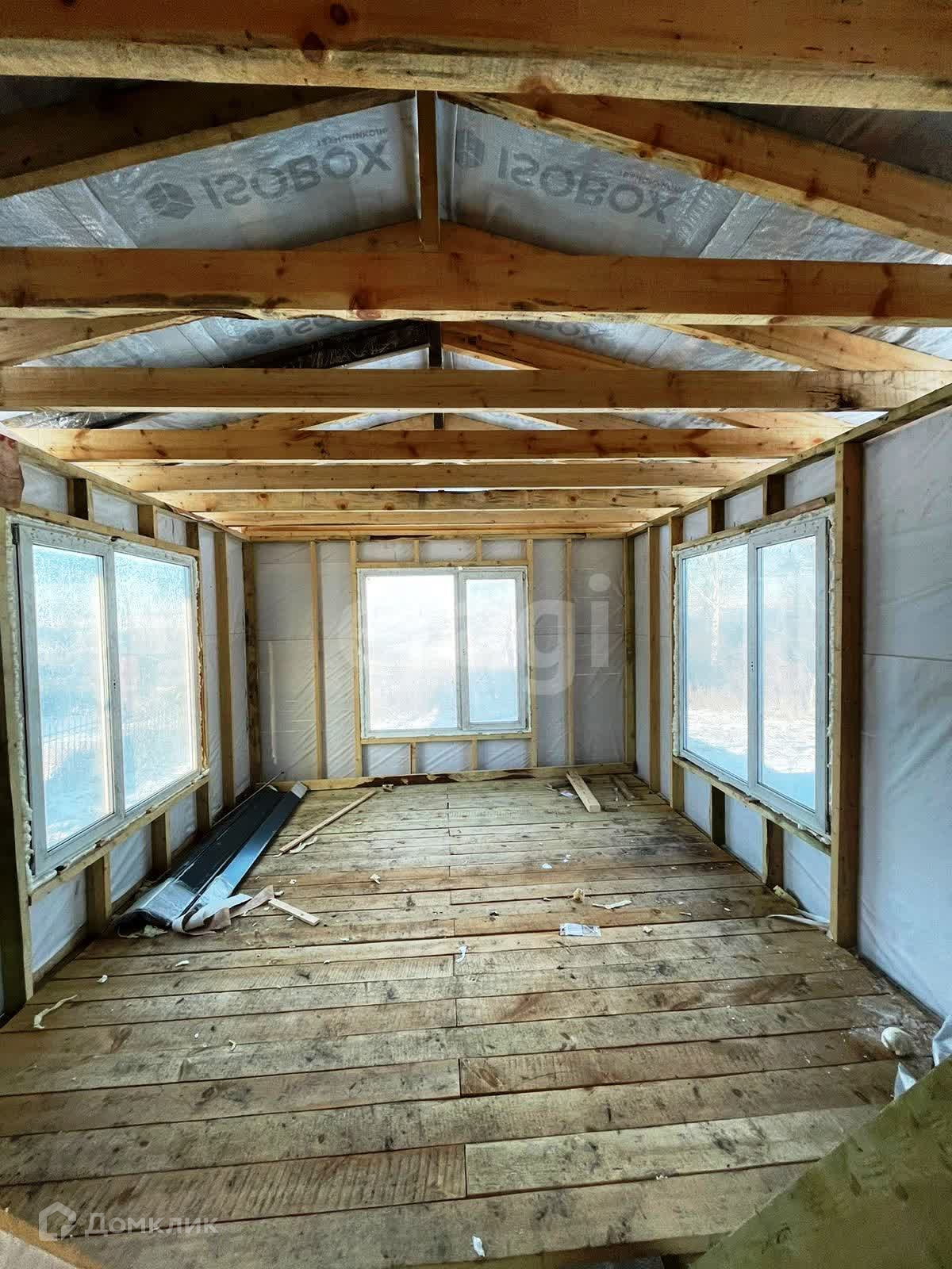 Дом каркасный на винтовых сваях общим размером 8 на 10. Дом 52 м2 + комната второго этажа 12 м2. Терраса 28м2. По строительству осталось утепление и сделать внутреннюю отделку. Участок тупиковый с которого открывается потрясающий вид на лес, дальше за лесом поле. Соседи дружелюбные и отзывчивые (только с двух сторон). Перед участком много места для парковки автомобиля. В шаговой доступности(3мин) магазины со всеми необходимыми товарами для жизни и отдыха(зимой не работают). Есть соседи которые в зимний период находятся там постоянно. От конечной остановки на машине 1 минута, пешком 3 минуты.